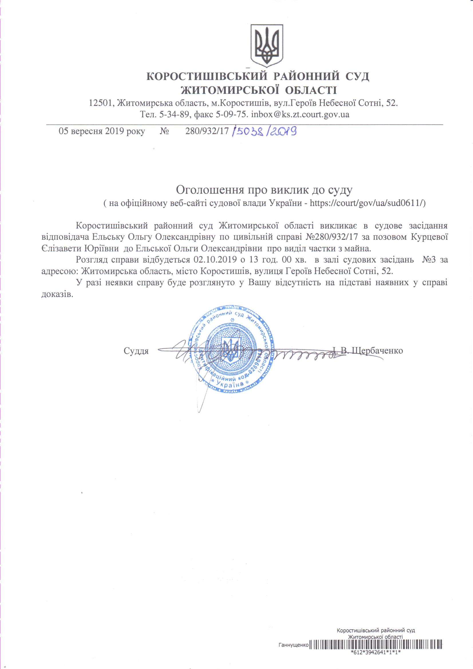 Коростишівський районний суд Житомирської області