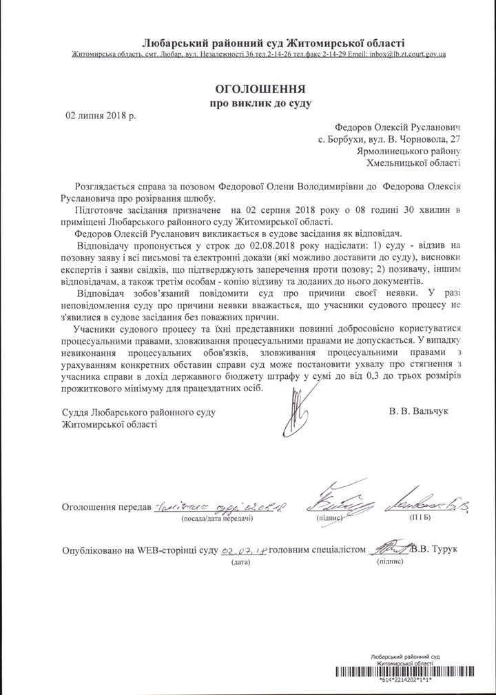 ОГОШЕННЯ про виклик до суду Федорова Олексія Руслановича