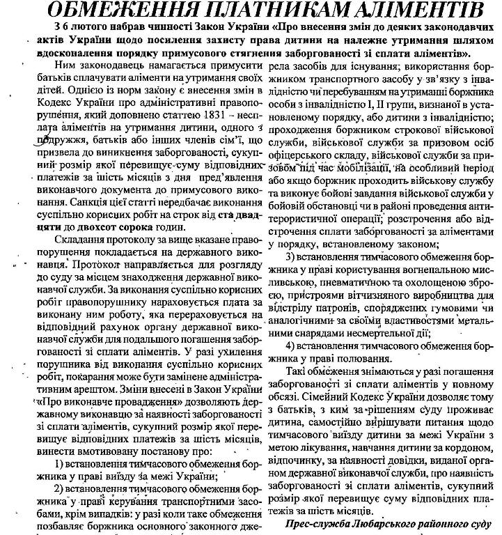 ОБМЕЖЕННЯ ПЛАТНИКАМ АЛІМЕНТІВ