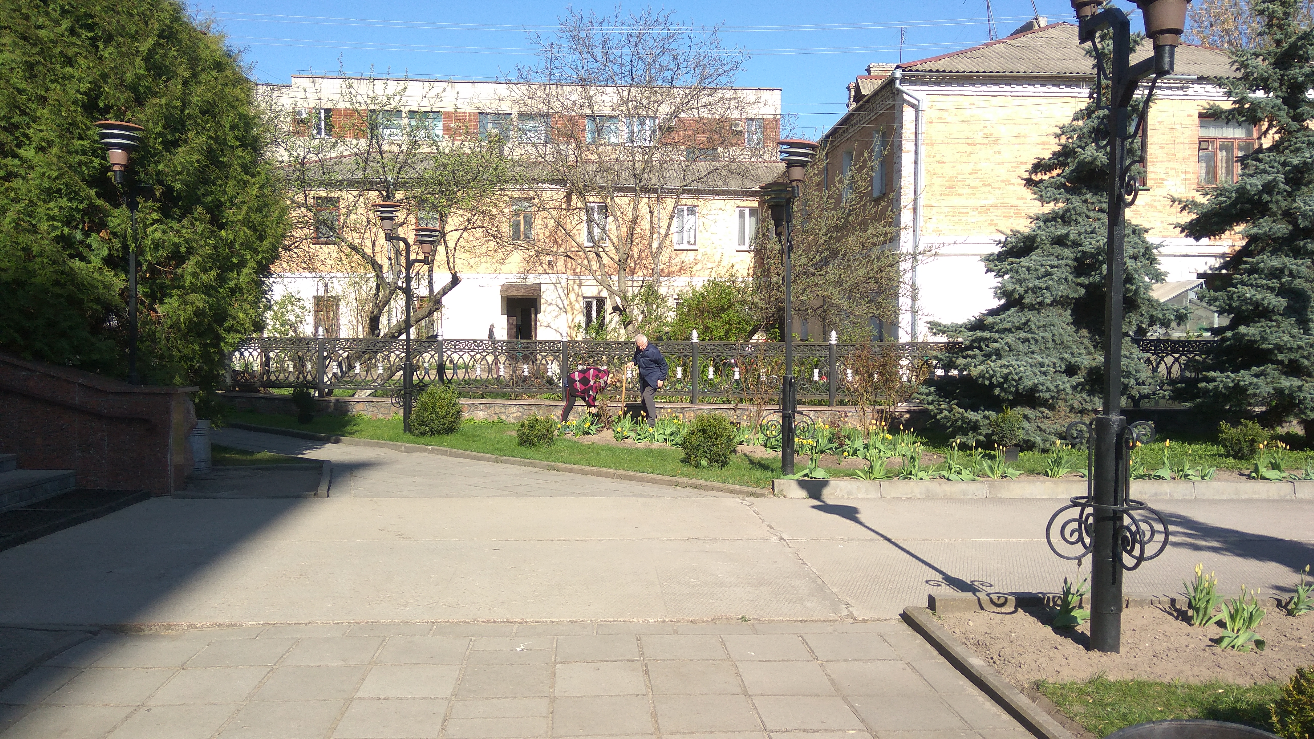 20 квітня 2018 року працівники апарату суду займалися благоустроєм прилеглої до будівлі суду території: саджали кущі та квіти.