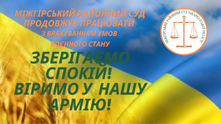 Виходячи з наведеного вище, Міжгірський районний суд продовжує працювати з врахуванням умов воєнного стану.