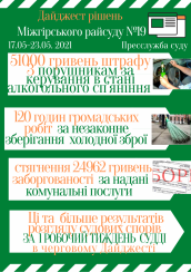 - визнав винуватими у вчиненні правопорушень, передбачених частиною 1 статті 130 КУпАП, і оштрафував на 17000 гривень 2 водіїв, які керували транспортними засобами в стані алкогольного сп’яніння (справи №302/399/21, №302/403/21);