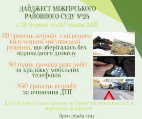 З 28 червня по 02 липня 2021 року судом прийнято 16 остаточних рішень, короткий огляд яких наведено нижче. З повними їх текстами можна ознайомитись в Єдиному державному реєстрі судових рішень за номером і датою.