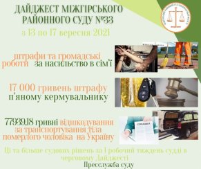 З 13 по 17 вересня 2021 року судом прийнято 33 остаточні рішення, короткий огляд яких наведено нижче. З повними їх текстами можна ознайомитись в Єдиному державному реєстрі судових рішень за номером і датою.
