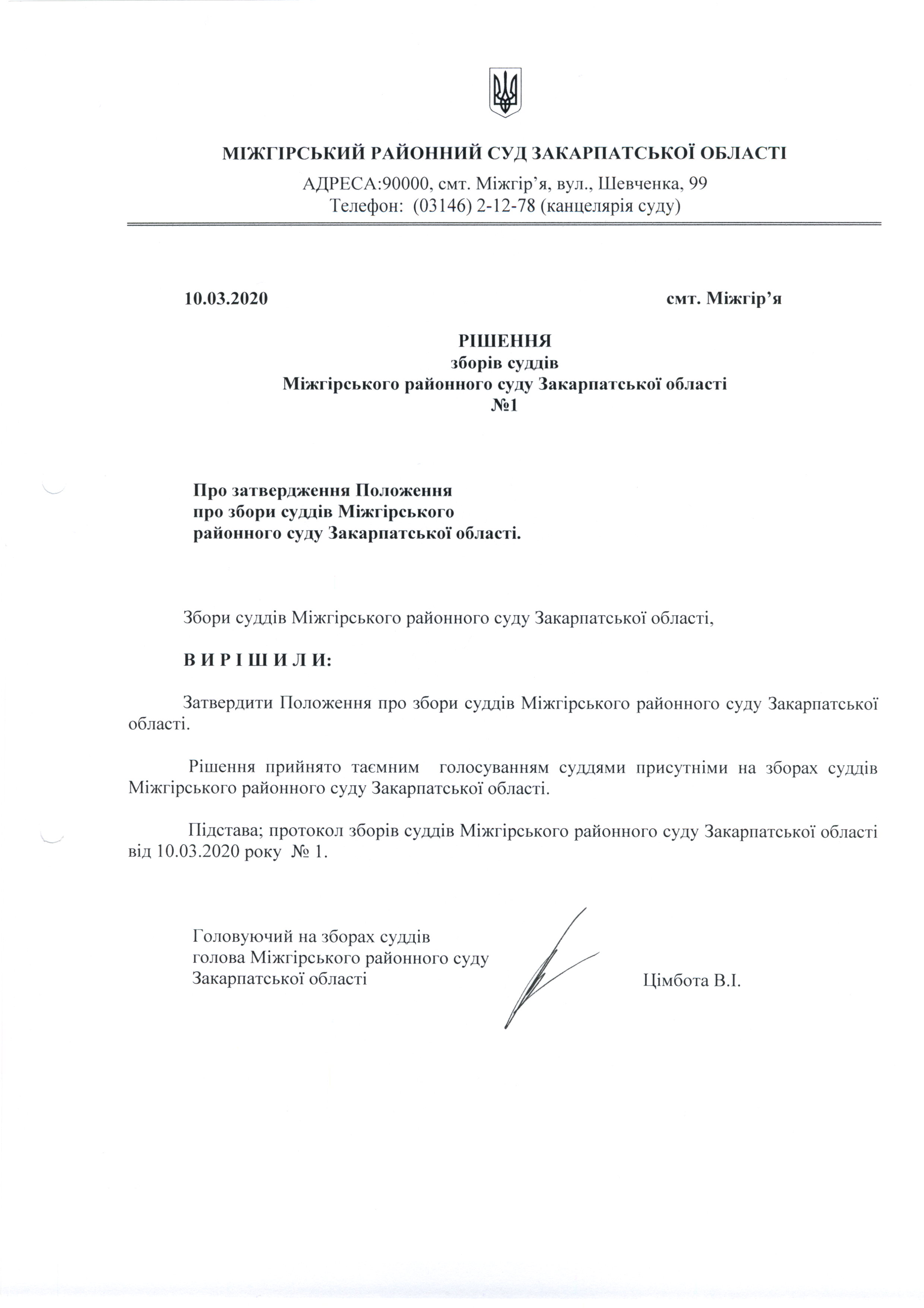 Рішення зборів суддів Міжгірського районного суду Закарпатської області від 10 березня 2020 року № 1