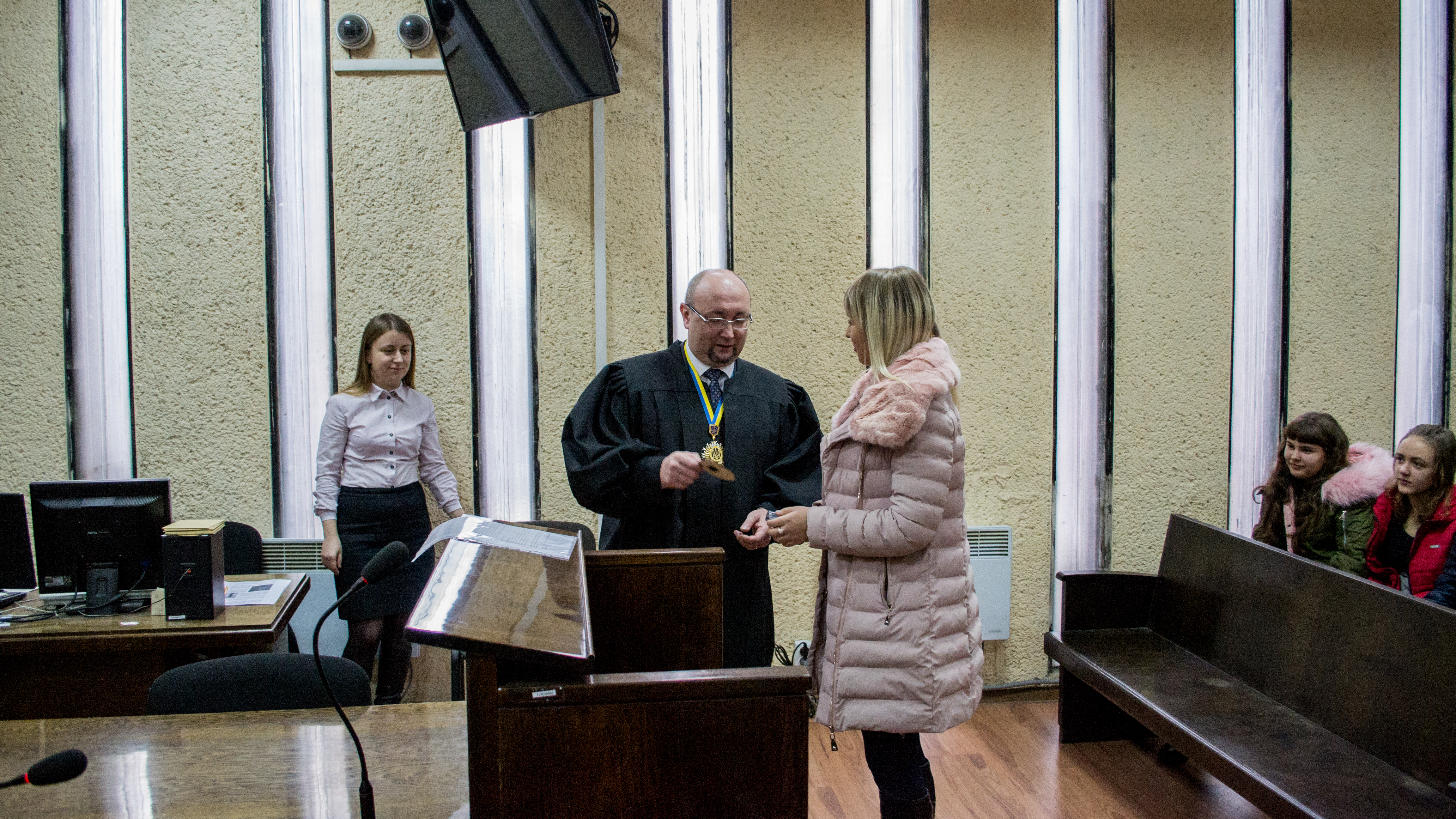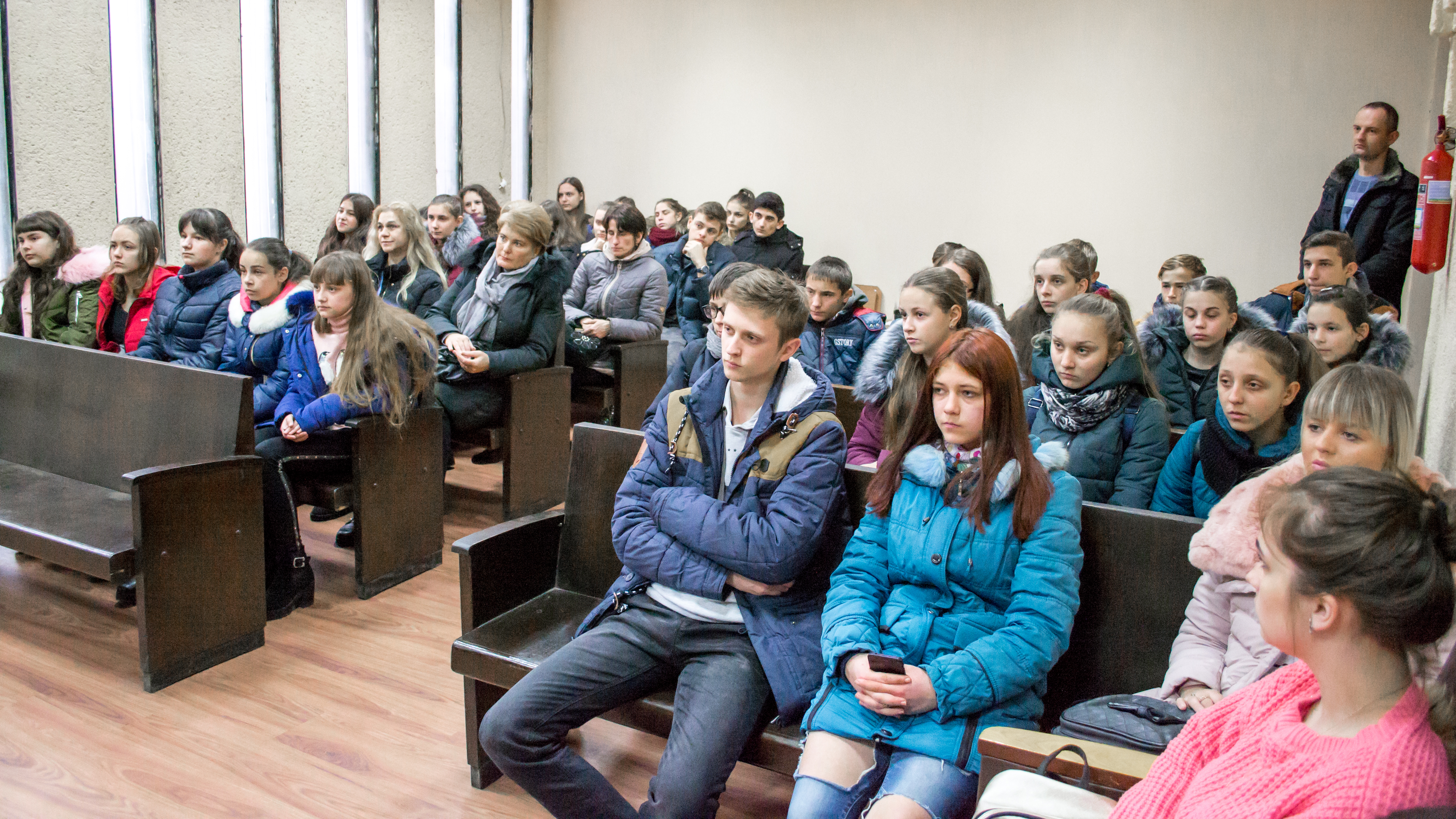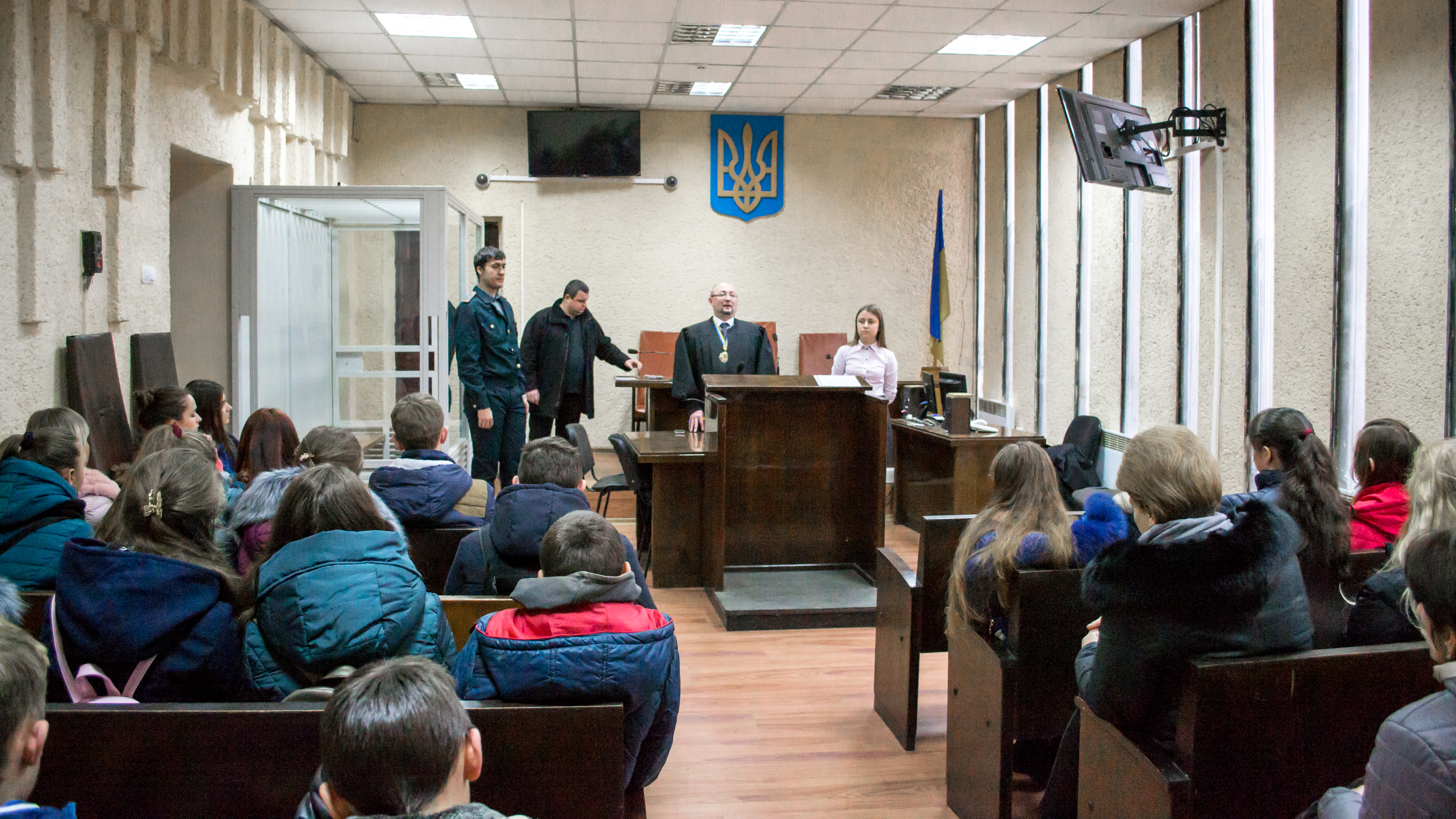 Розпочалася зустріч у залі судових засідань з виступу судді-спікера суду Чепурнова В.О., який ознайомив дітей із історією судової системи, категоріями та процедурою розгляду справ Перечинським районним судом. Також довів до відома учнів перелік навиків, якими потрібно володіти для роботи в суді, детальніше зупинився на важливості здобуття юридичної освіти.