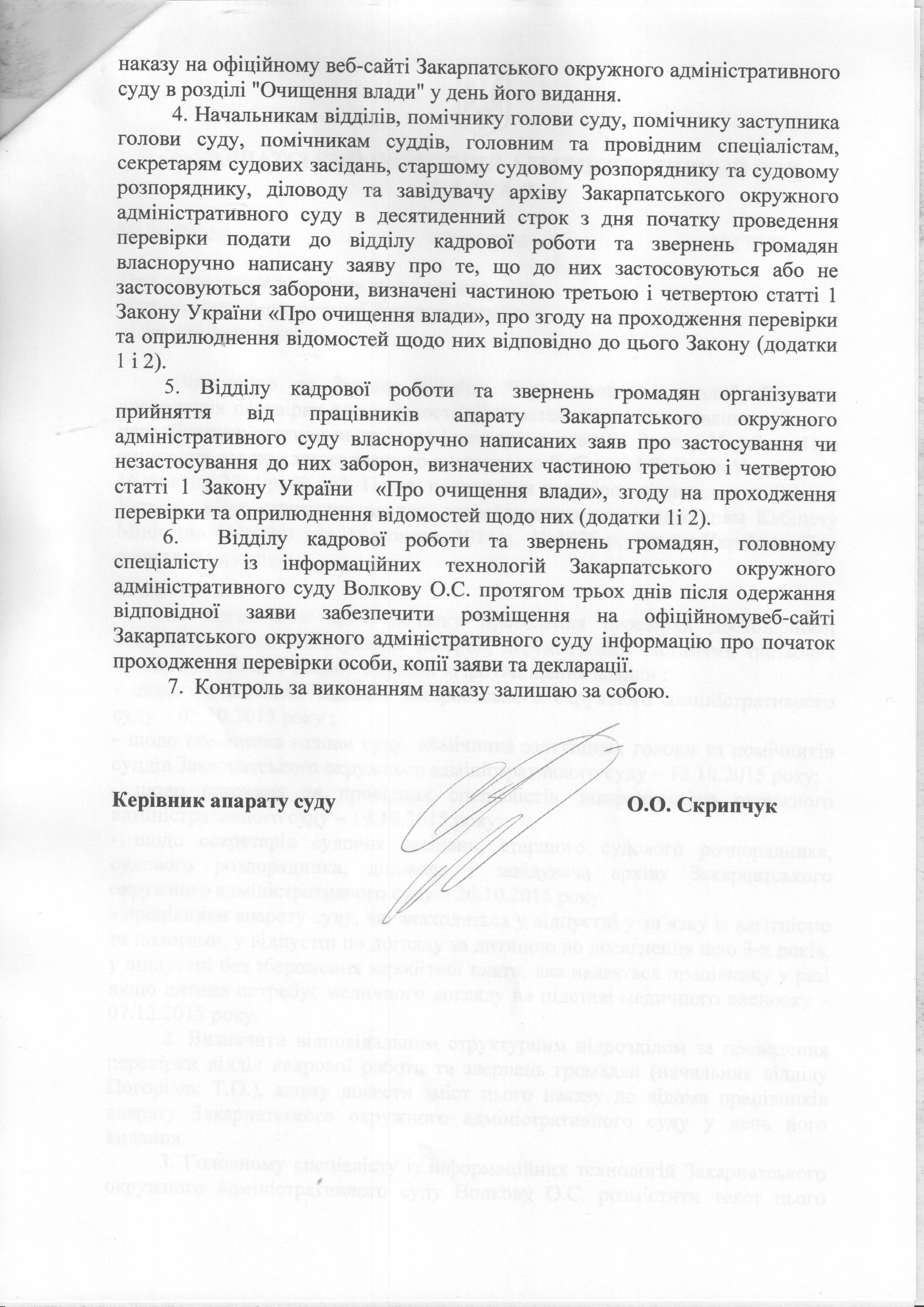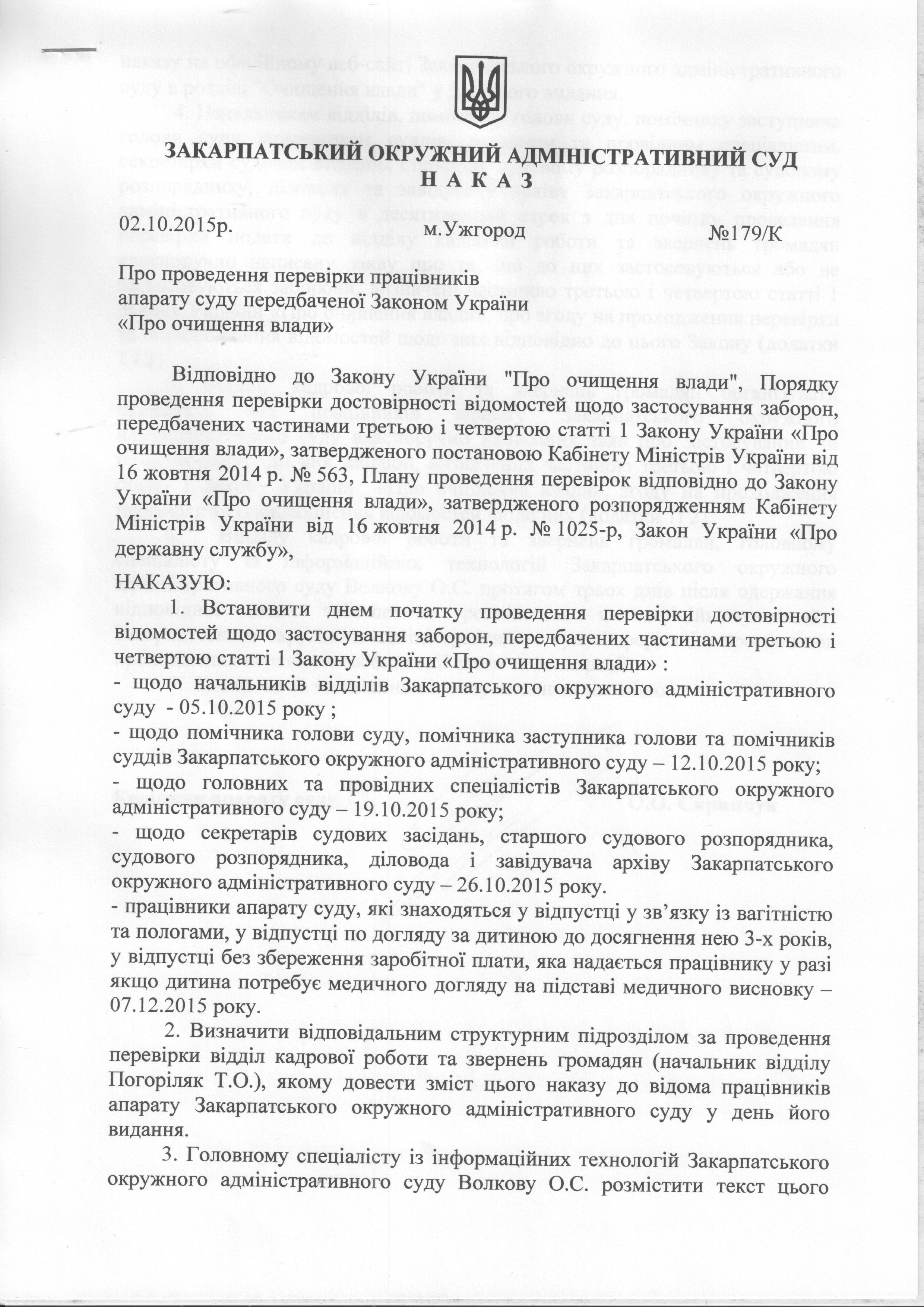 Повідомлення про початок проведення перевірки щодо працівників апарату