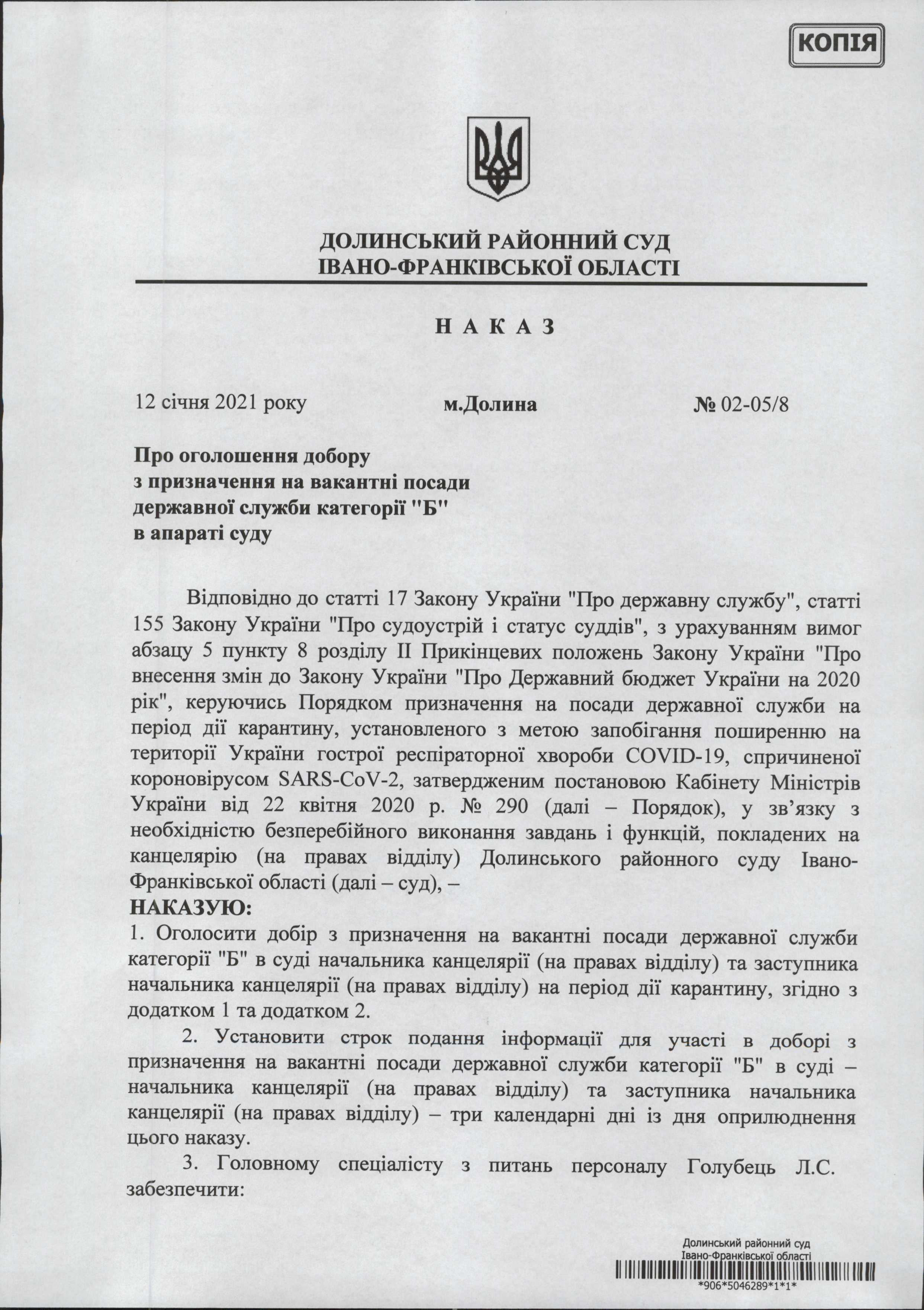 Оголошення добору з призначенням на вакантні посади державної служби категорії "Б"