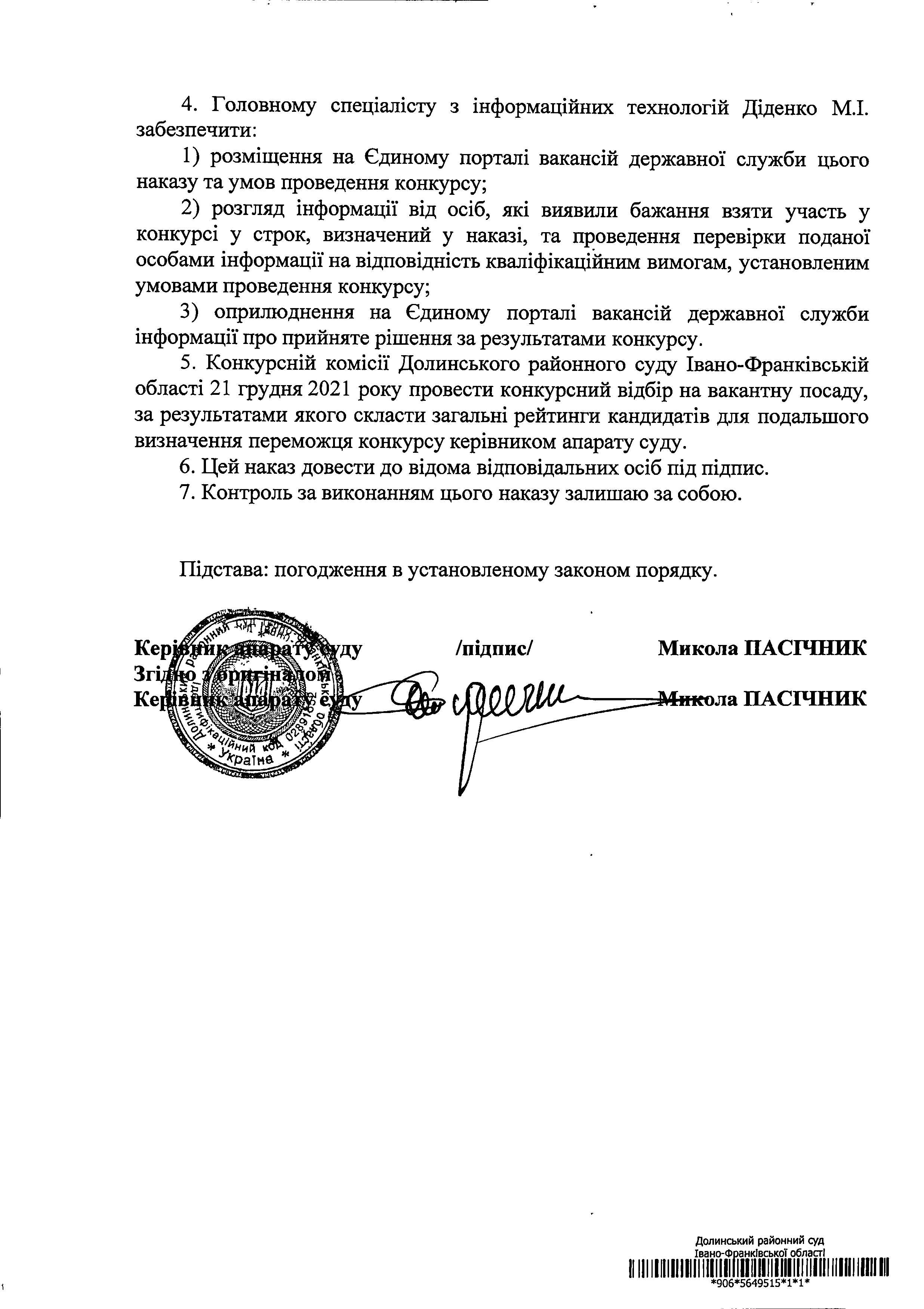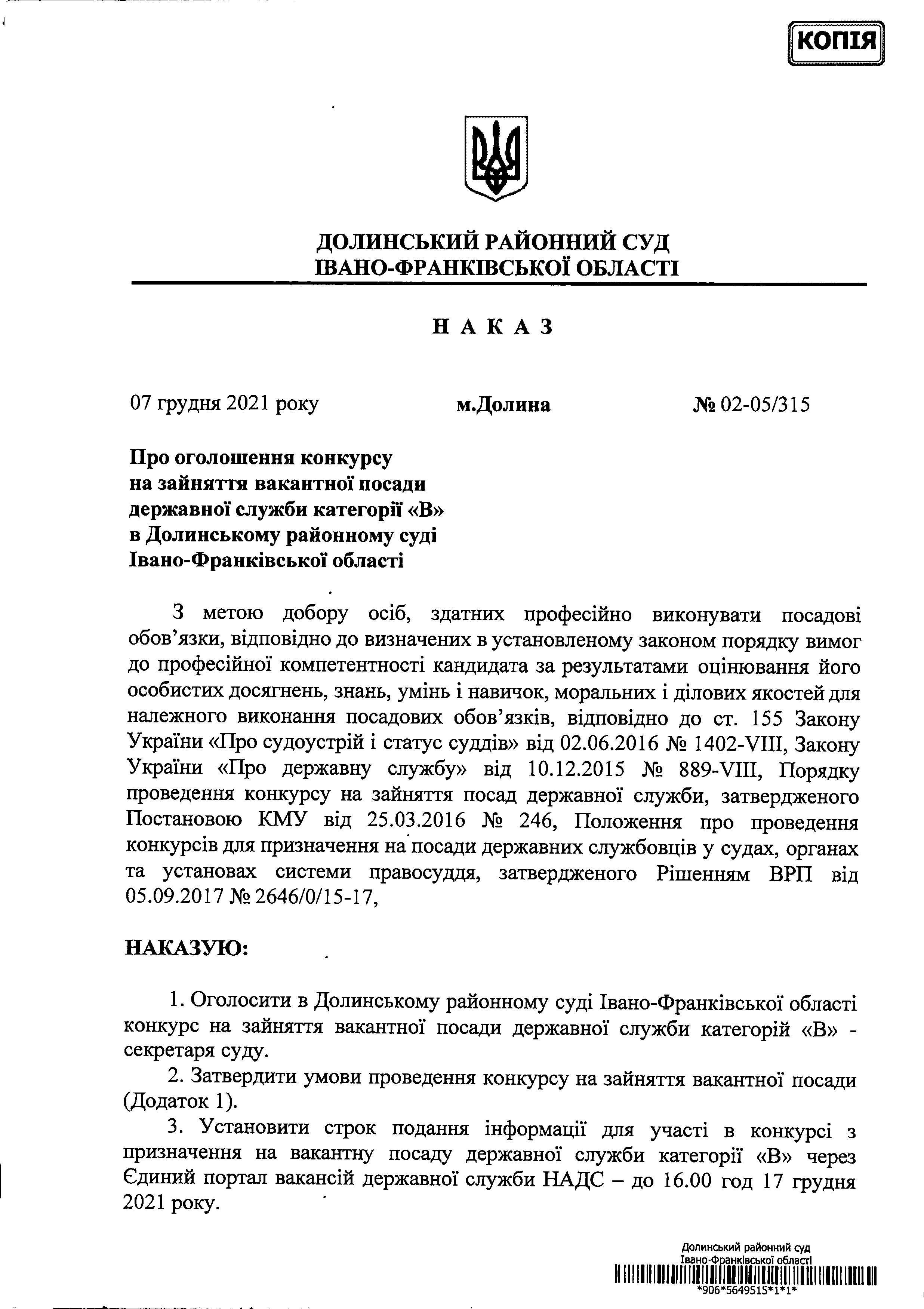 Оголошення про проведення конкурсу на зайняття вакантної посади
