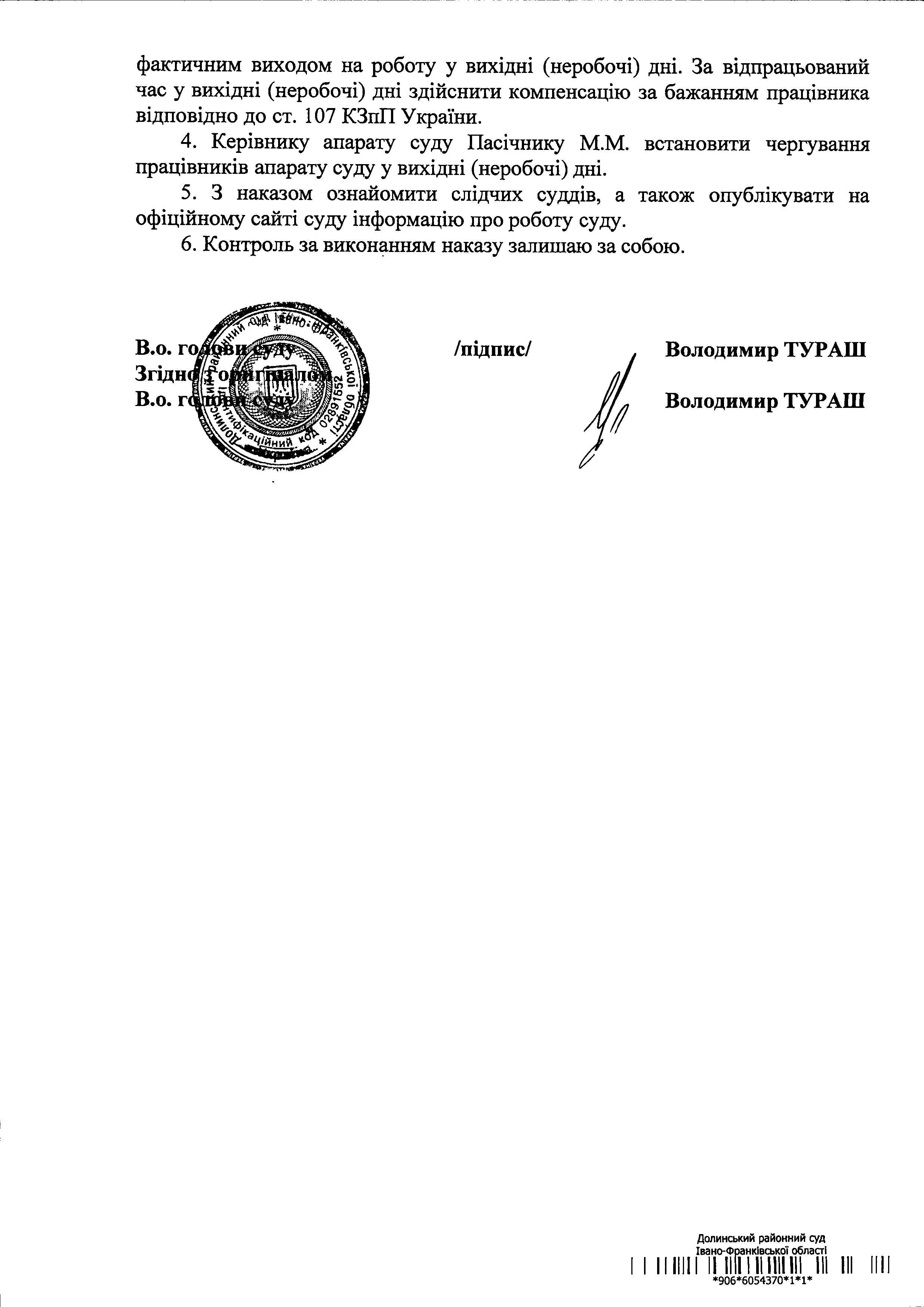 Наказ про затвердження графіку чергування слідчого судді у вихідні (неробочі) дні на серпень 2022 року