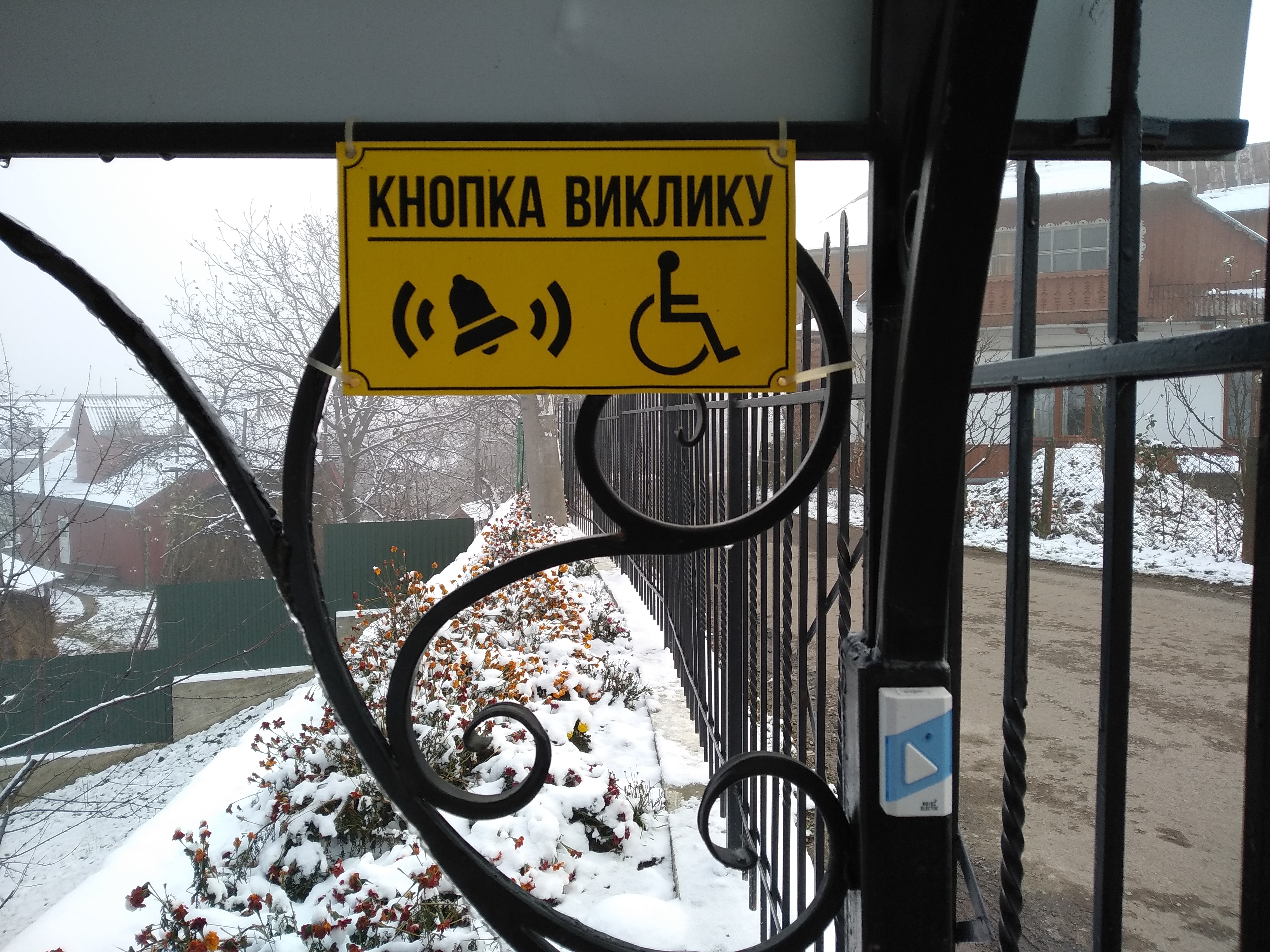 Кнопка виклику біля центрального входу воріт для маломобільних груп населення