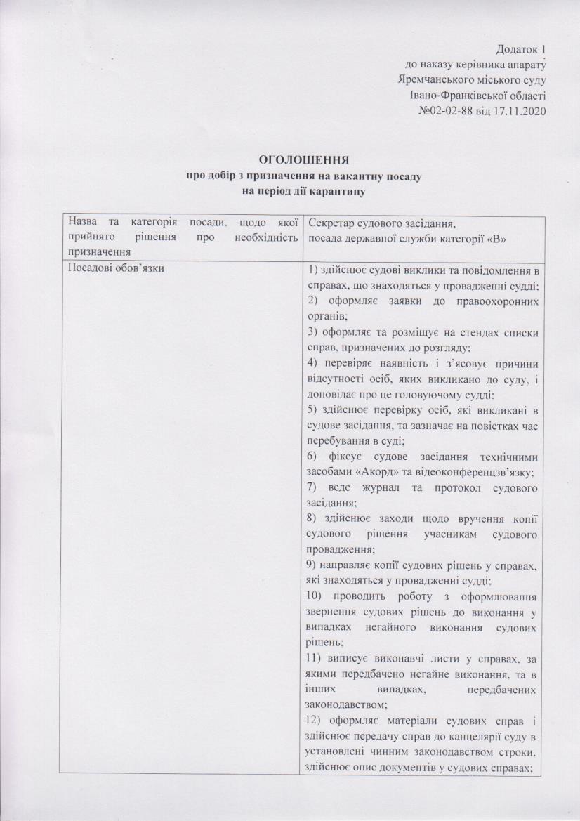Оголошення про добір з призначення на вакантну посаду на період дії карантину