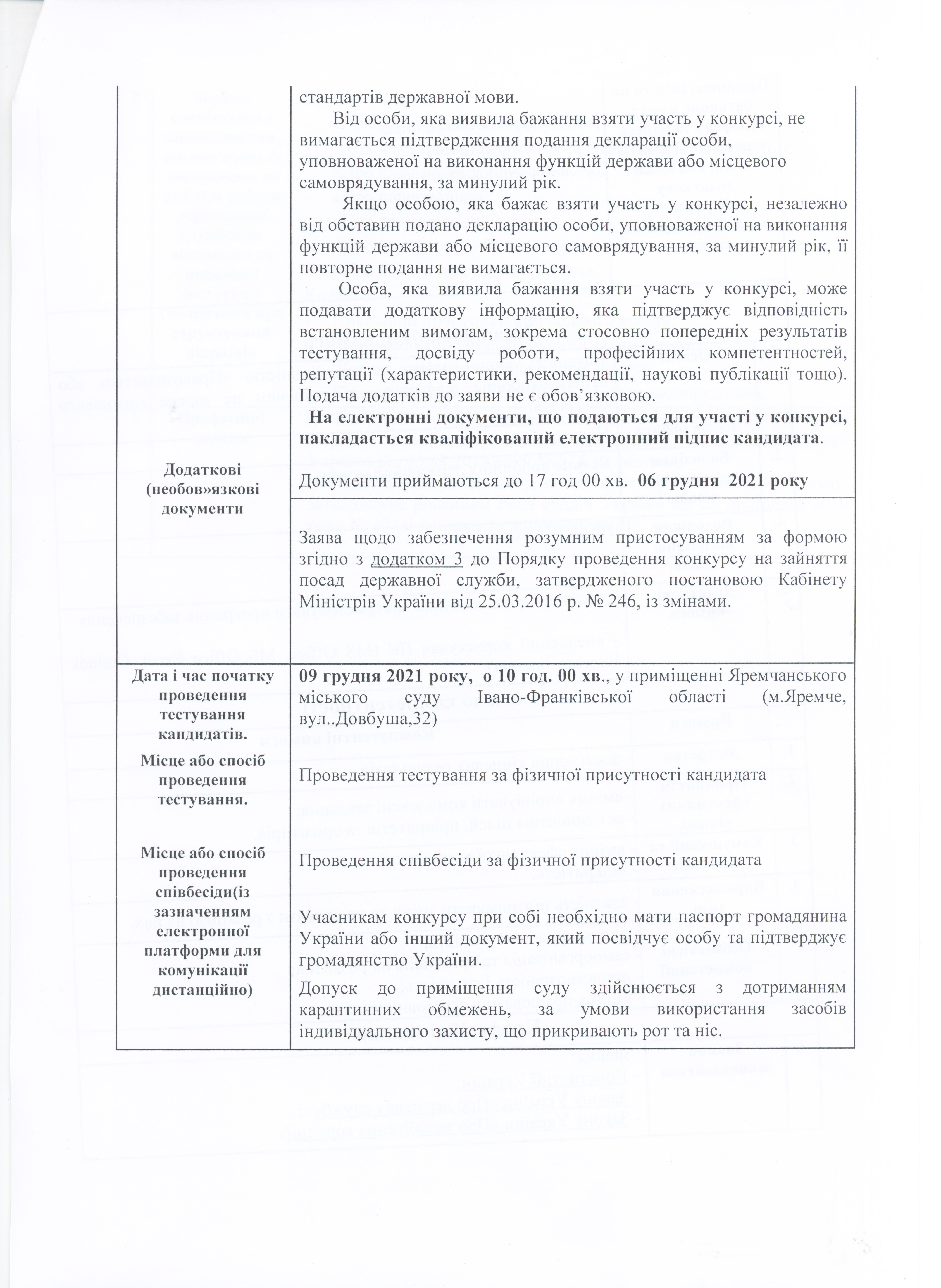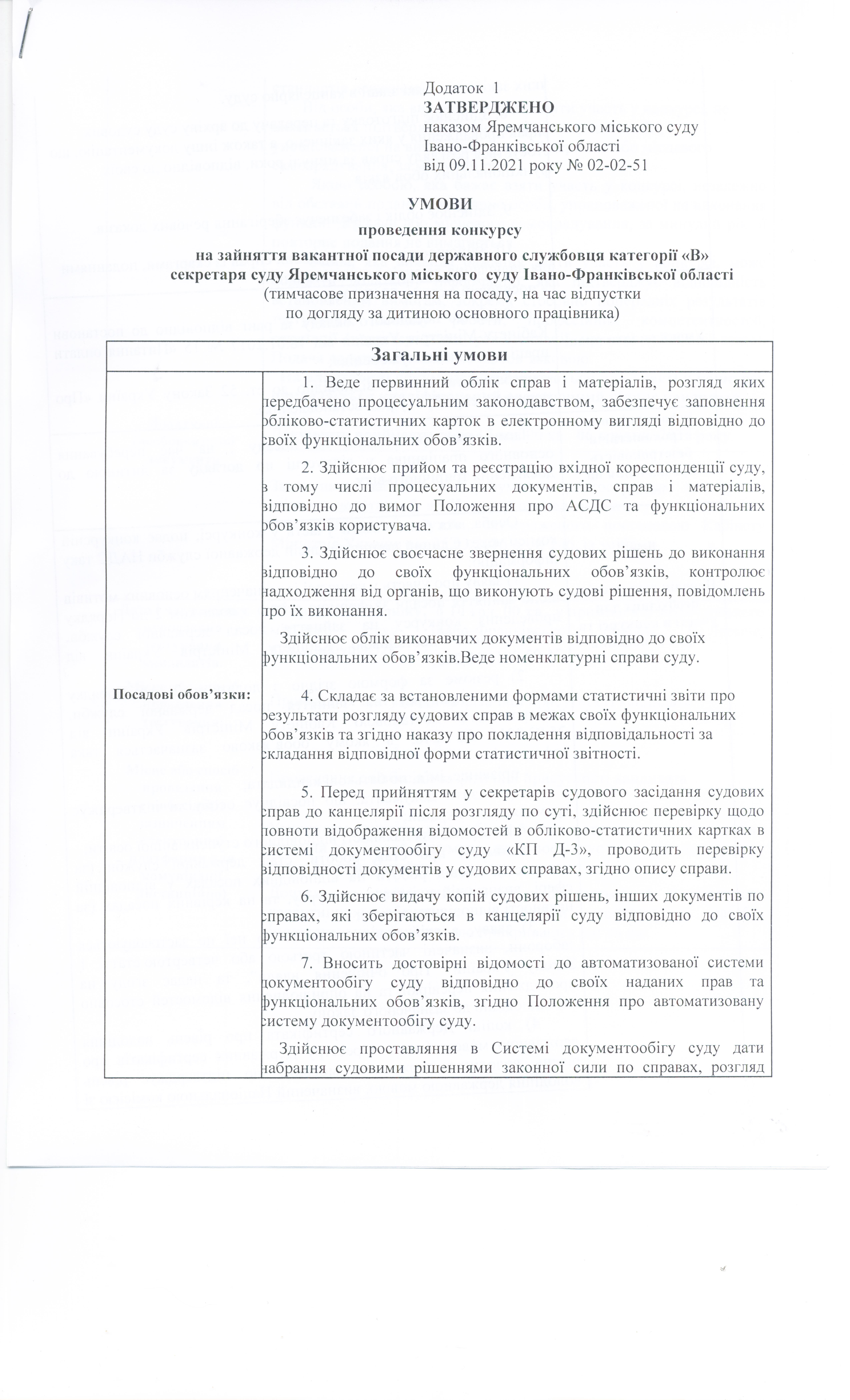 Умови проведення конкурсу на зайняття вакантної посади державного службовця категорії "В" (секретаря суду)