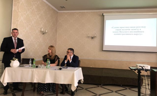 Під час семінару суддям окружних адміністративних судів регіону та Восьмого апеляційного адміністративного суду було представлено огляд судової практики щодо розгляду справ шукачів захисту в межах Восьмого апеляційного адміністративного округу та особливості судового розгляду справ щодо оскарження рішень Державної міграційної служби України у справах шукачів захисту.