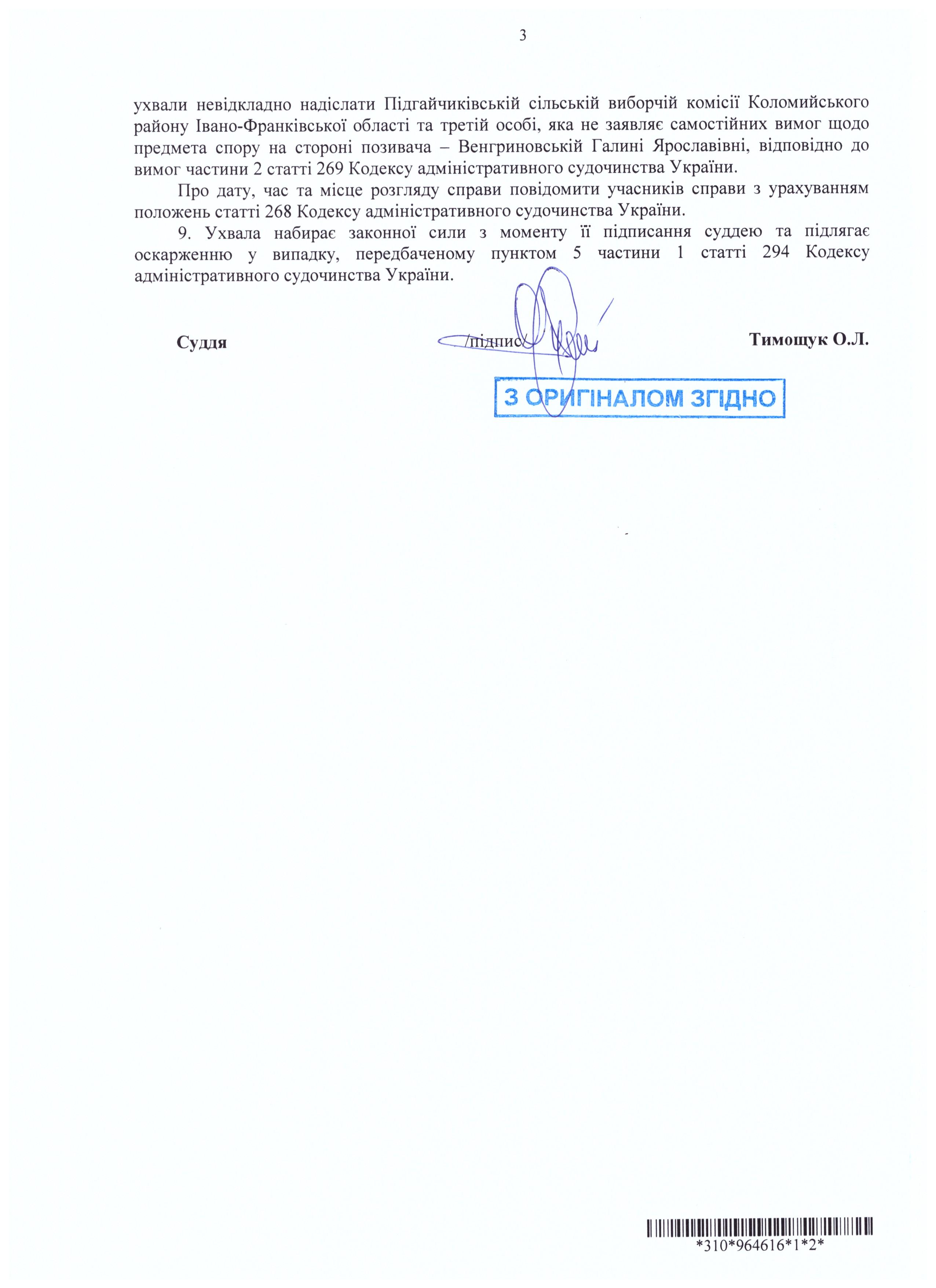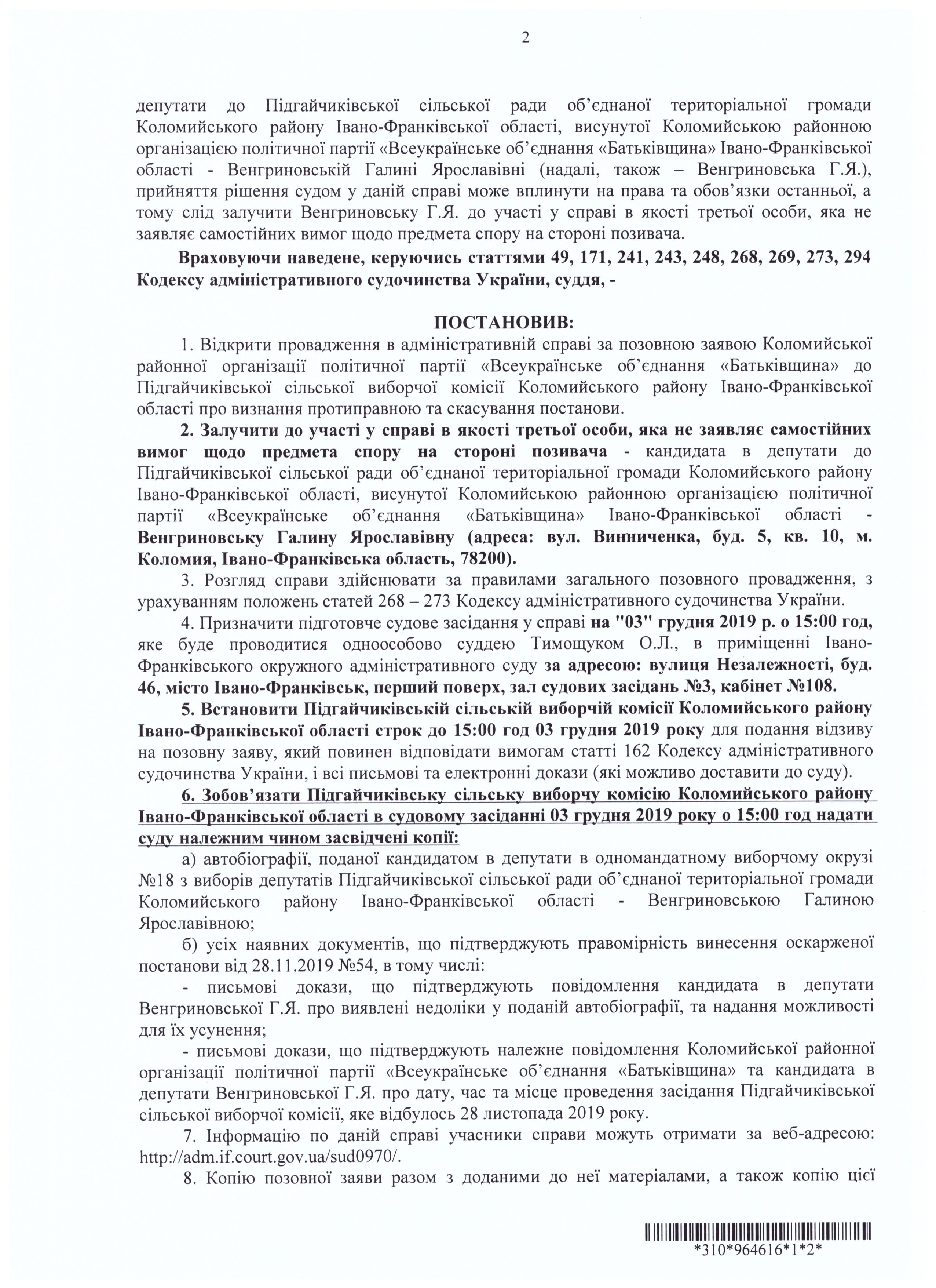 Повідомлення про оприлюднення ухвали про відкриття провадження у справі №300/2365/19 щодо скасування Рішення виборчої комісії
