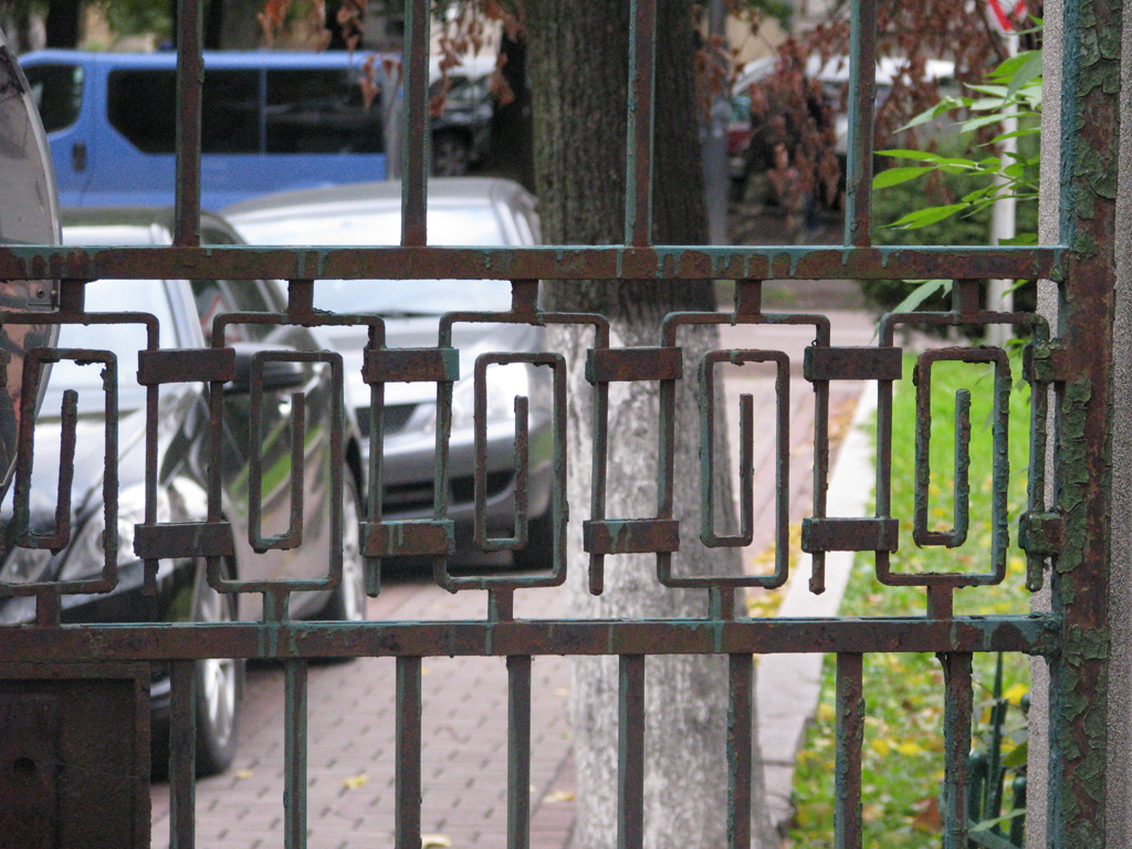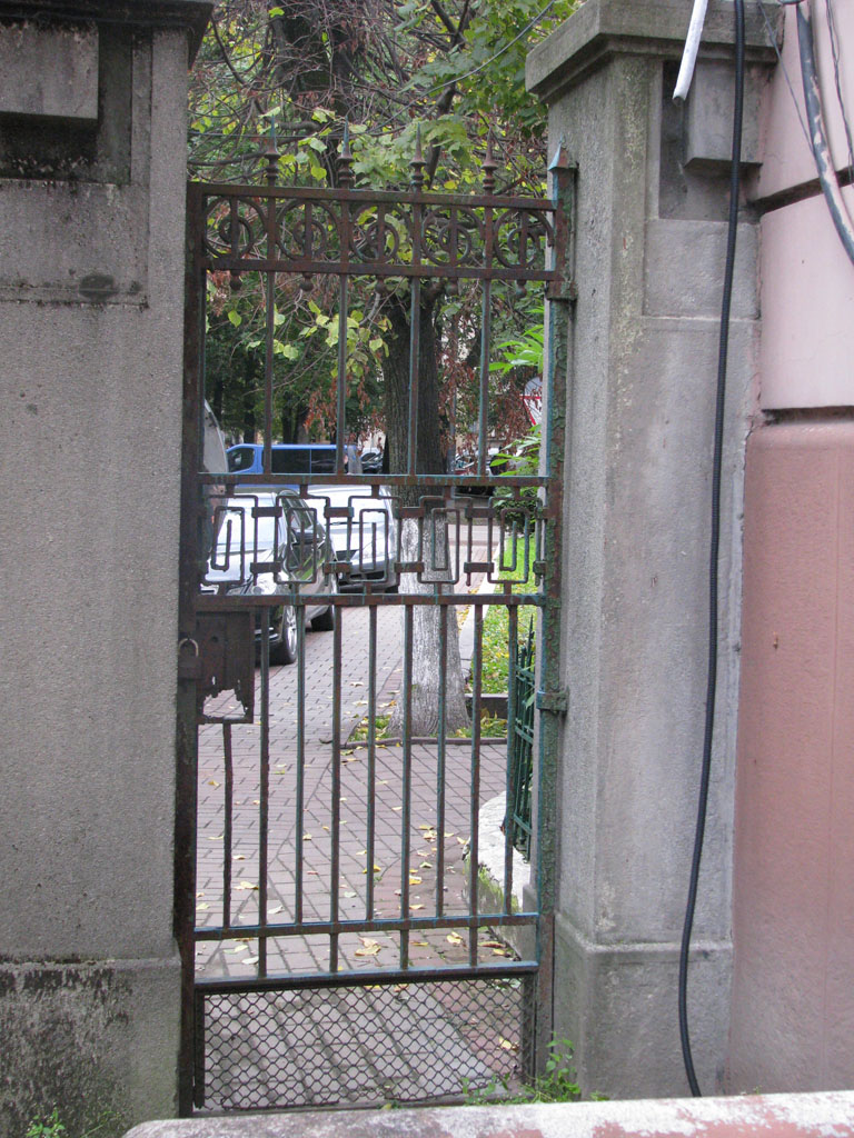 - Фрагмент огорожі подвір’я біля Будинку правосуддя з боку вул. Грюнвальської є старовинним та потребує ремонту – укріплення та реставрації. Однак, полотно воріт, на жаль, не є старовинним і автентичним (підтверджуємо фото), було встановлене тоді, коли у будівлі в радянський час розміщувався обласний комітет партії.