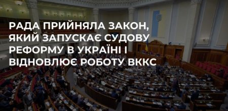 Верховна Рада прийняла закон “Про внесення змін до Закону України “Про судоустрій і статус суддів” та деяких законів України щодо відновлення роботи Вищої кваліфікаційної комісії суддів України” (законопроєкт № 3711-д).