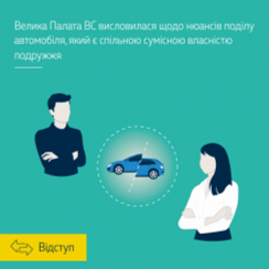 Велика Палата ВС постанову апеляційного суду скасувала в частині відмови в задоволенні вимог про виділення автомобіля у власність відповідача і стягнення з нього на користь позивачки грошової компенсації (у цій частині залишила в силі рішення суду першої інстанції про задоволення позову) і змінила в мотивувальній частині щодо відмови в задоволенні вимоги про припинення права спільної сумісної власності подружжя на автомобіль.