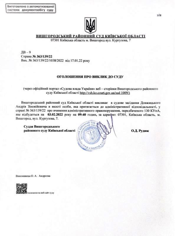 Оголошення про виклик до суду по справі № 363/139/22