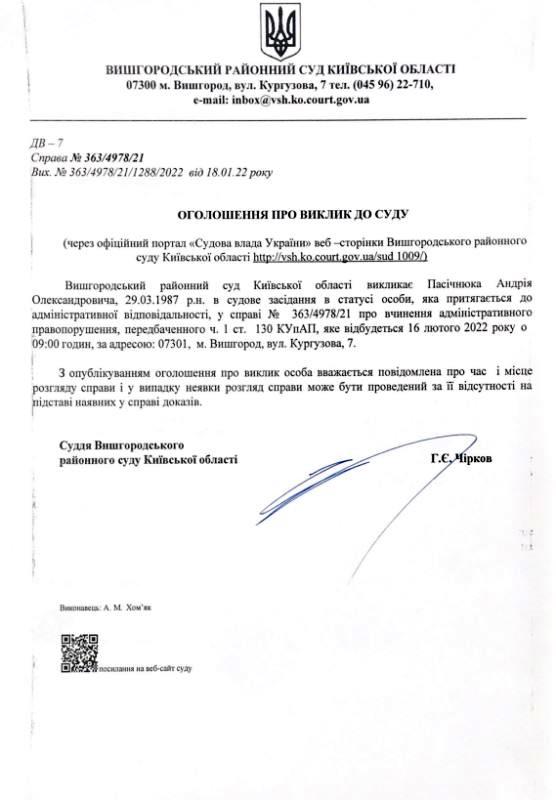 Оголошення про виклик до суду по справі № 363/4978/21