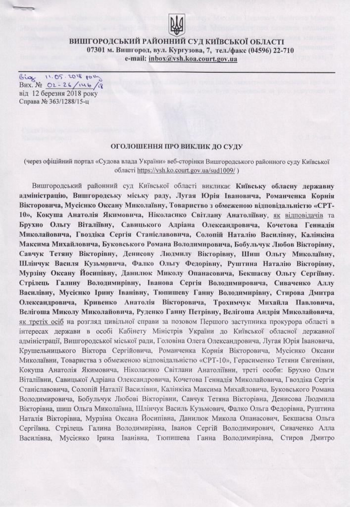 Буковський Роман Володимирович викликається в якості третьої особи до суду 31 травня 2018 року о 14:30 годин, цивільна справа № 363/1288/15-ц