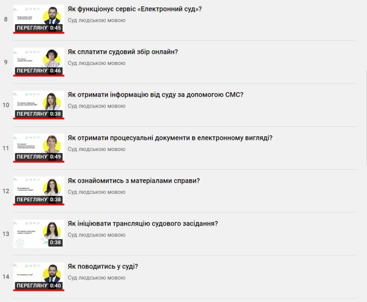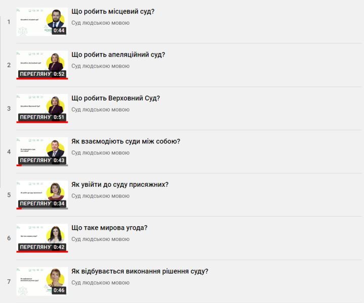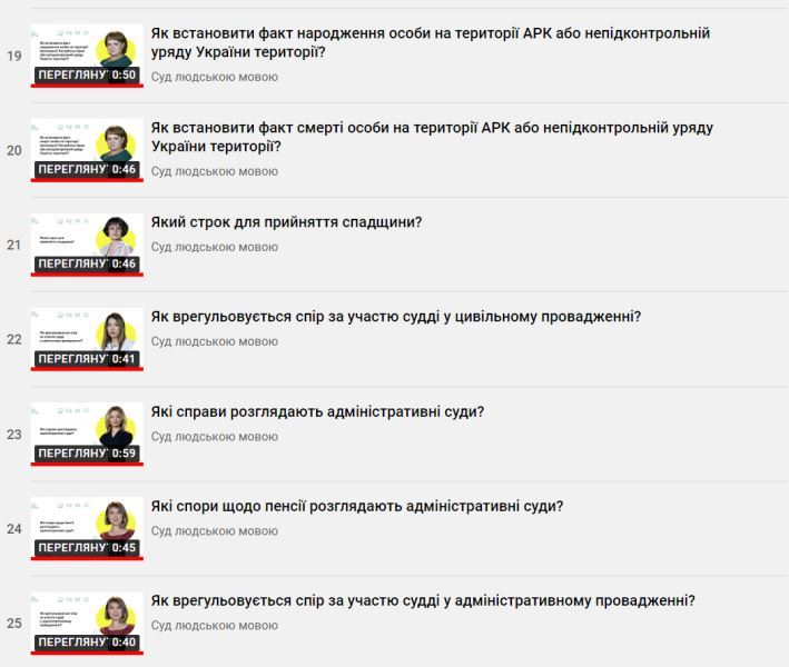 В межах проєкту на разі доступно до перегляду 25 просвітницьких відеороликів про Судову Владу України.