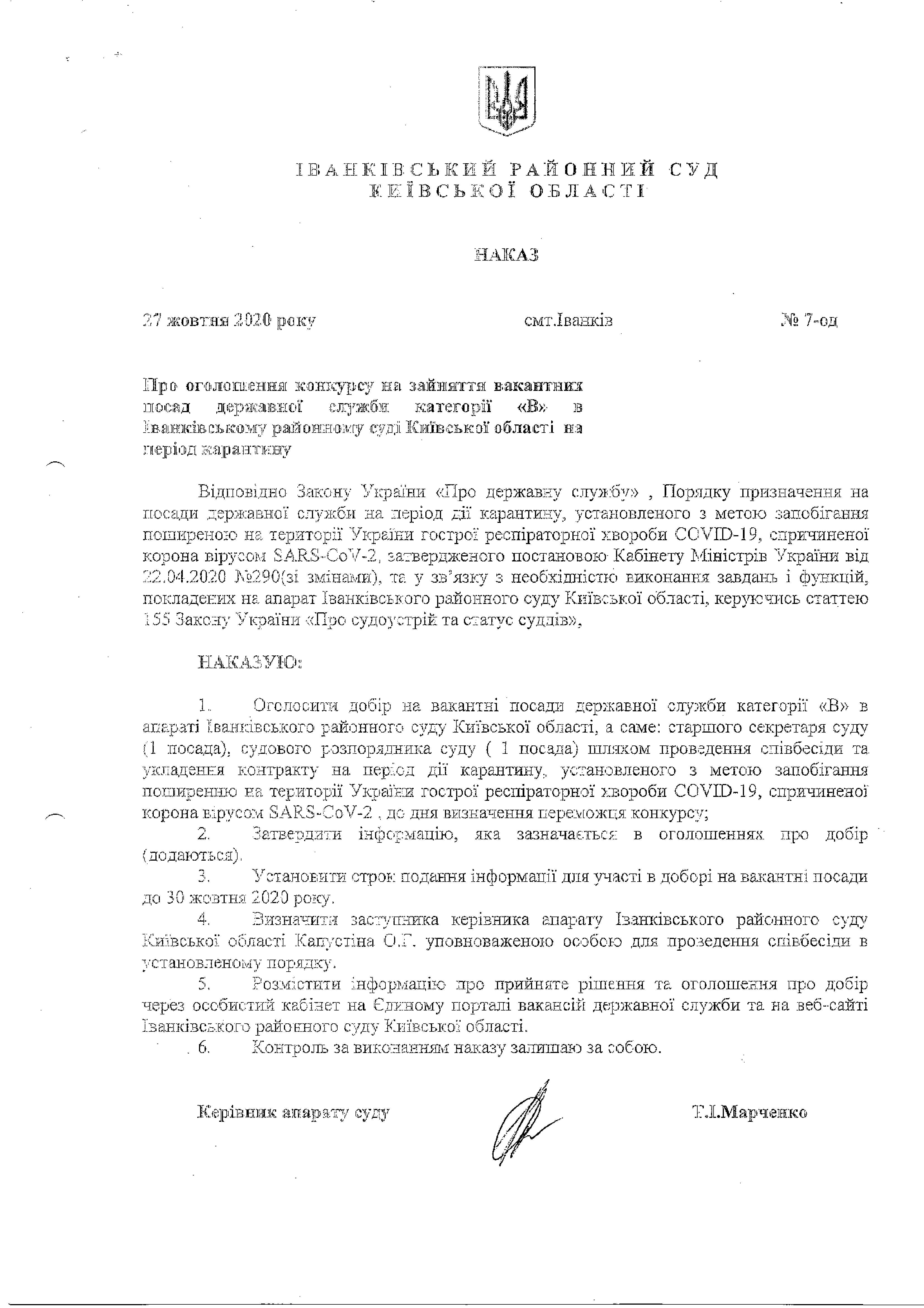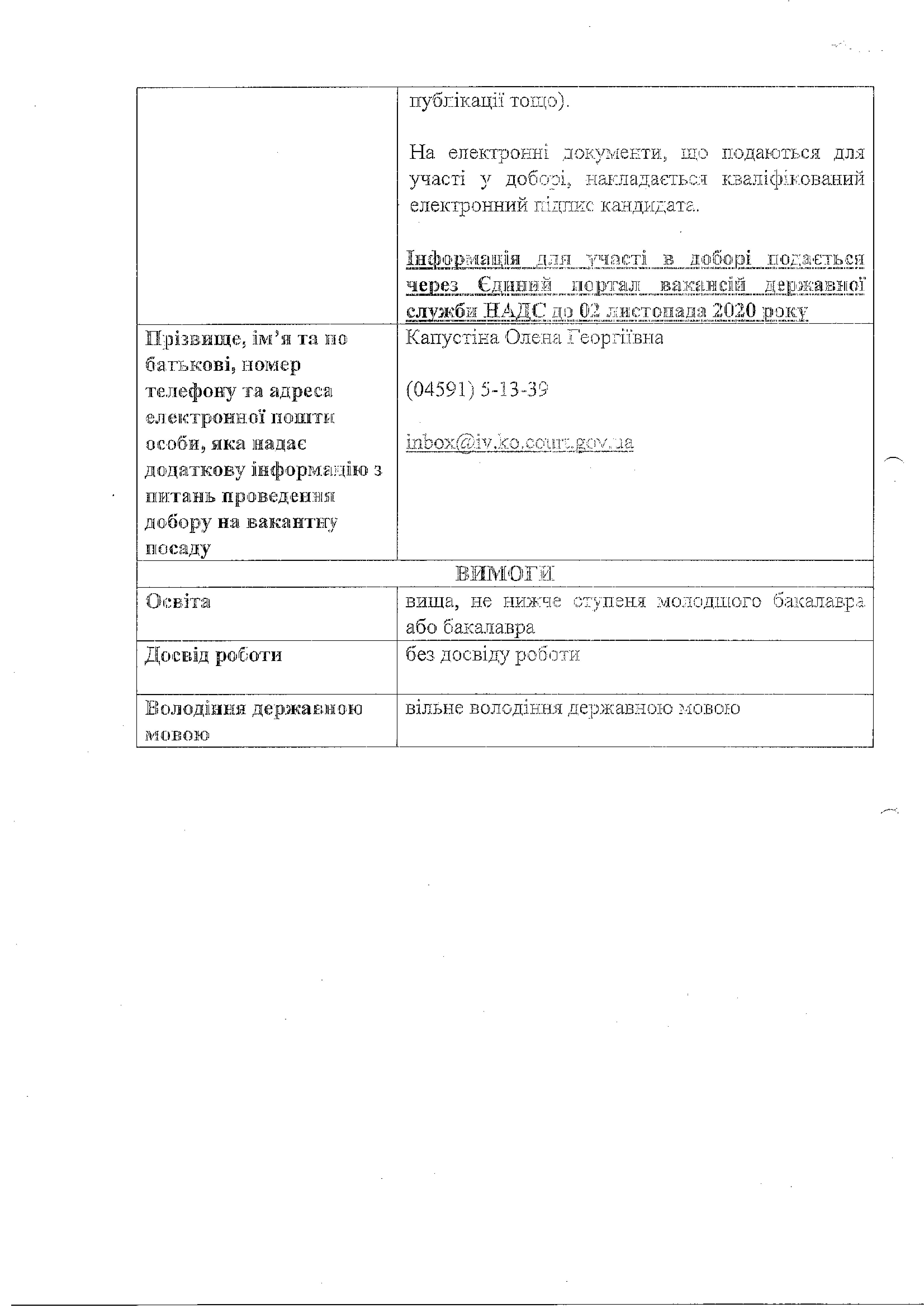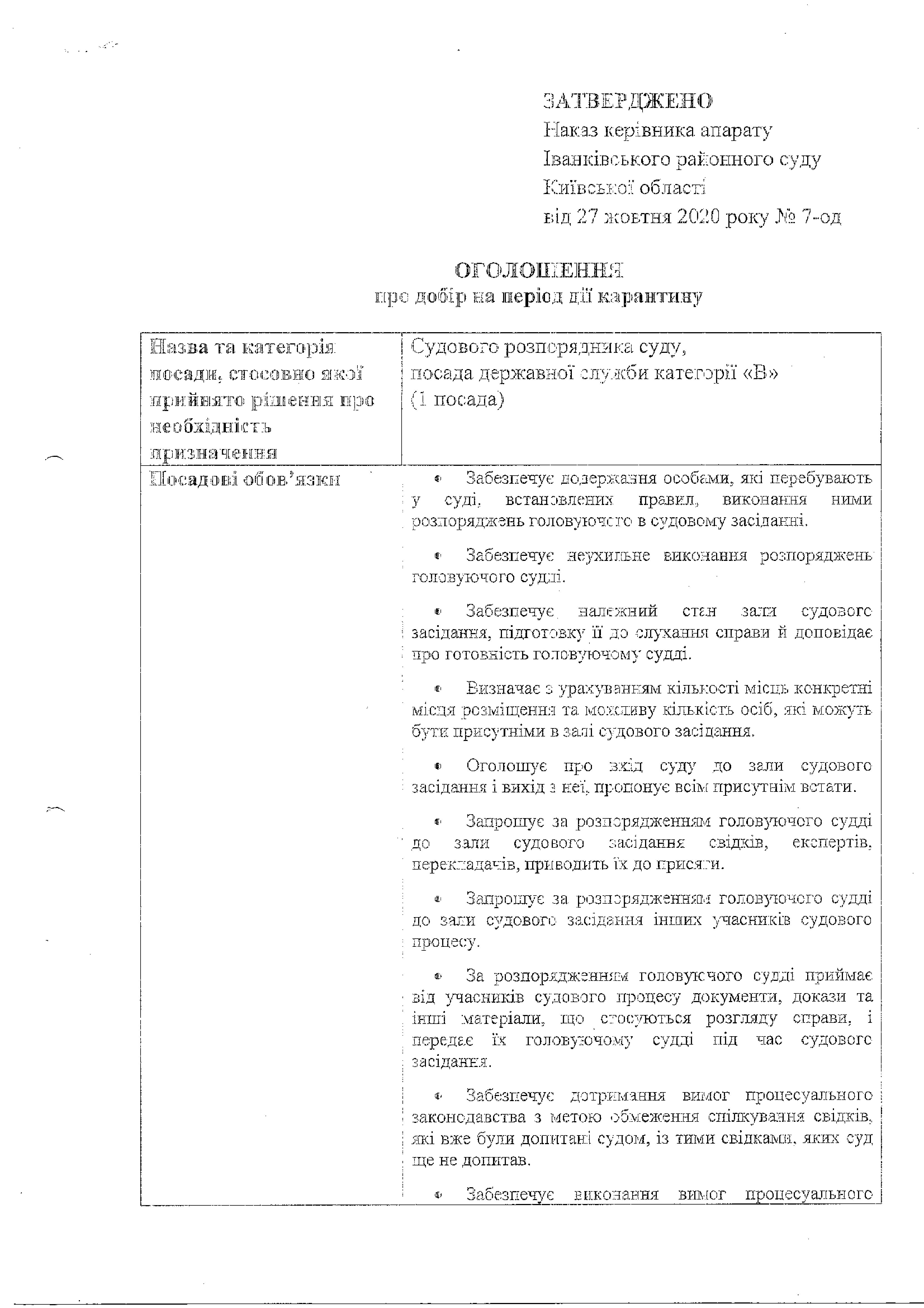 Судовий розпорядник суду, посада державної служби категорії <<В>>