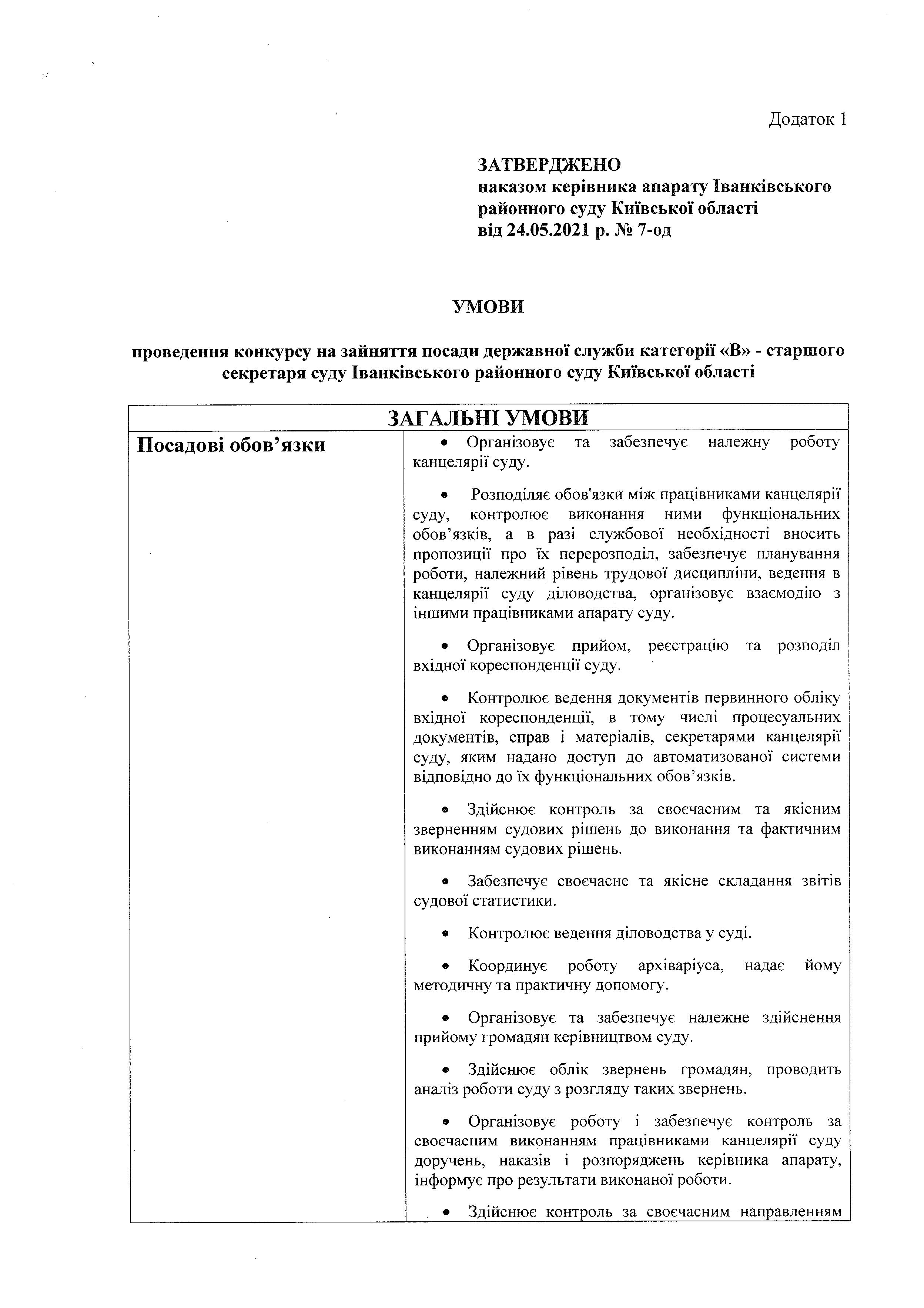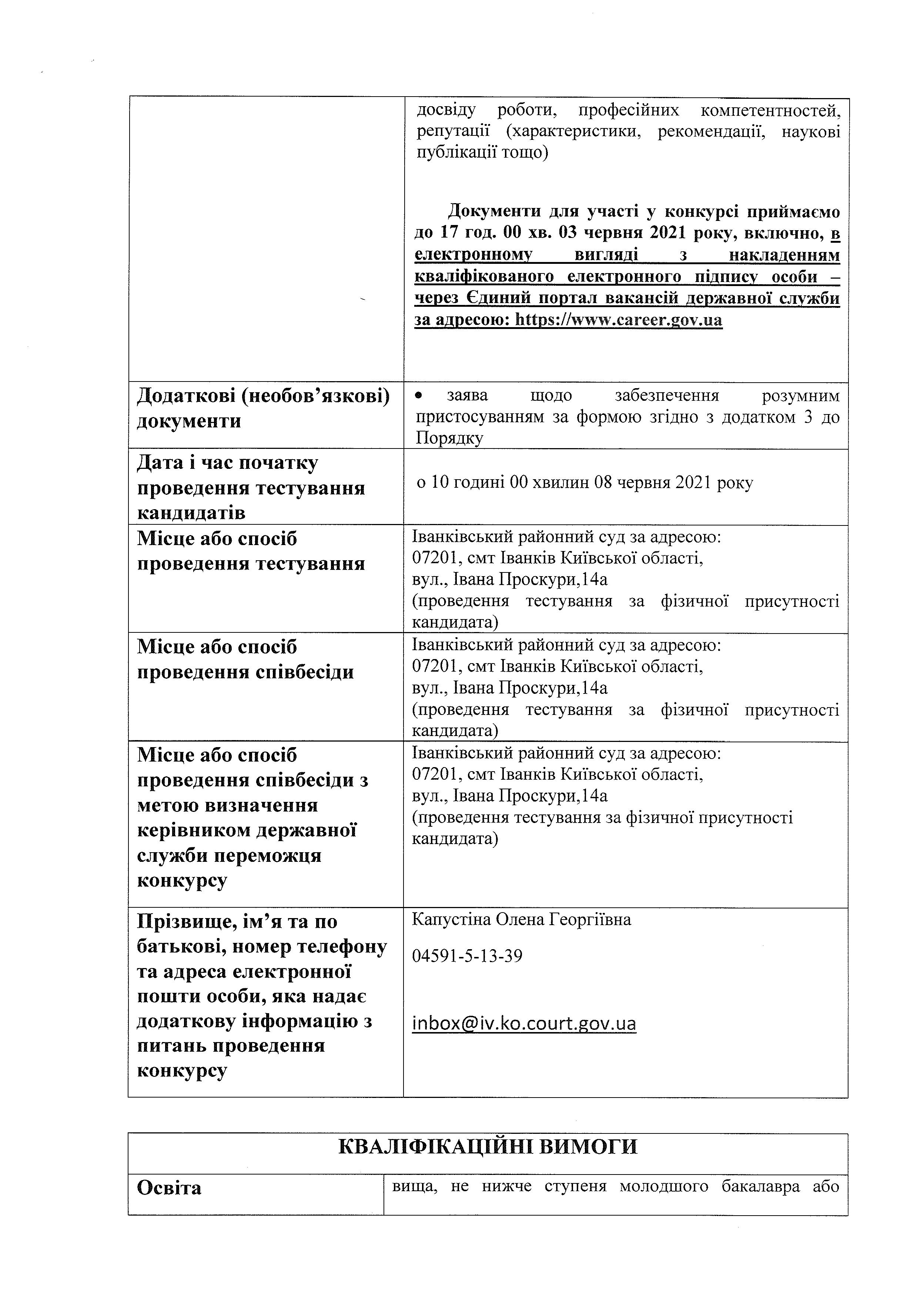 Проведення конкурсу на зайняття посади державної служби категорії «В» старшого секретаря суду Іванківського районного суду Київської області ЗАКРИТО