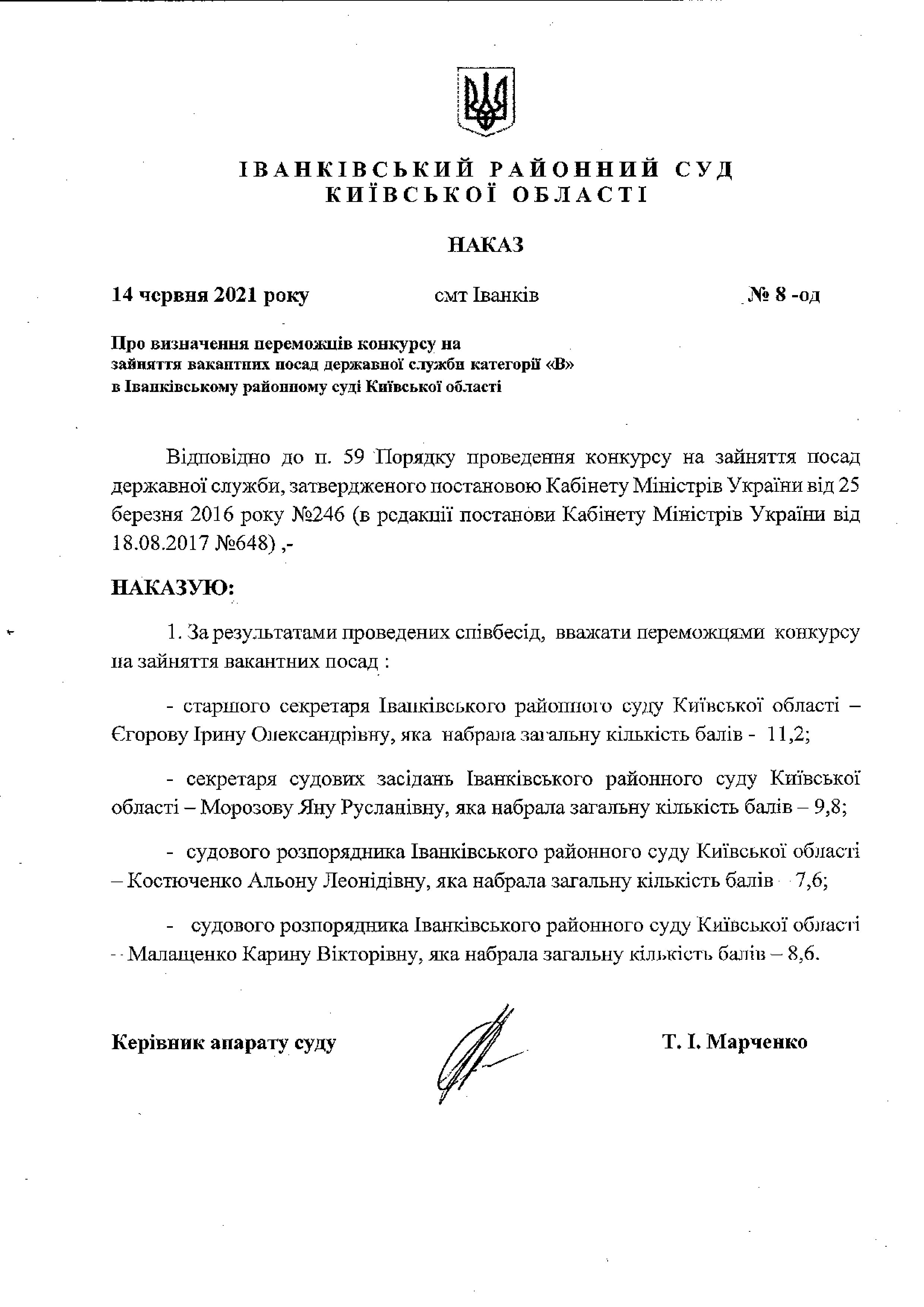 Визначення переможців конкурсу на зайняття вакантних посад державної служби категорії «В» в Іванківському районному суді Київської області