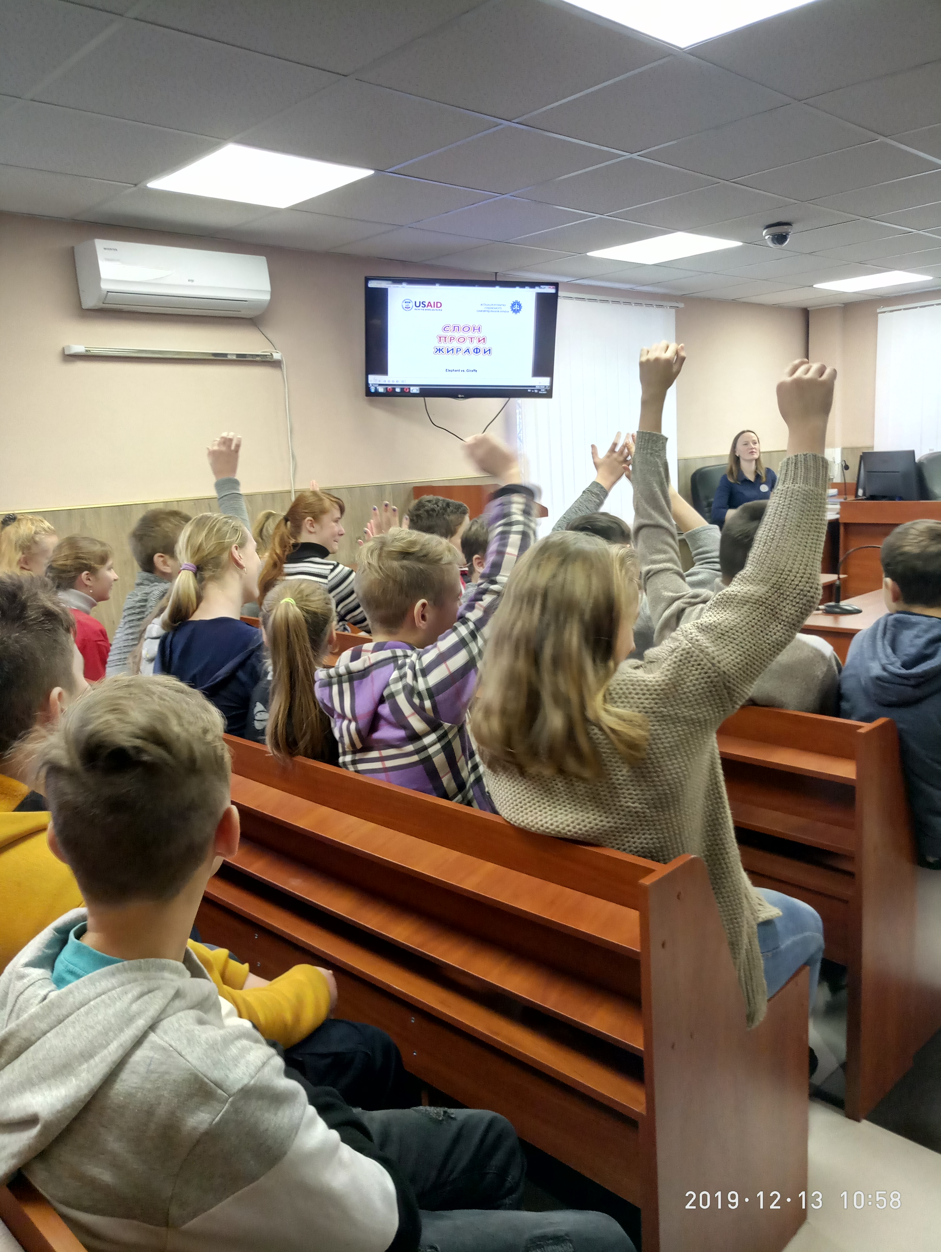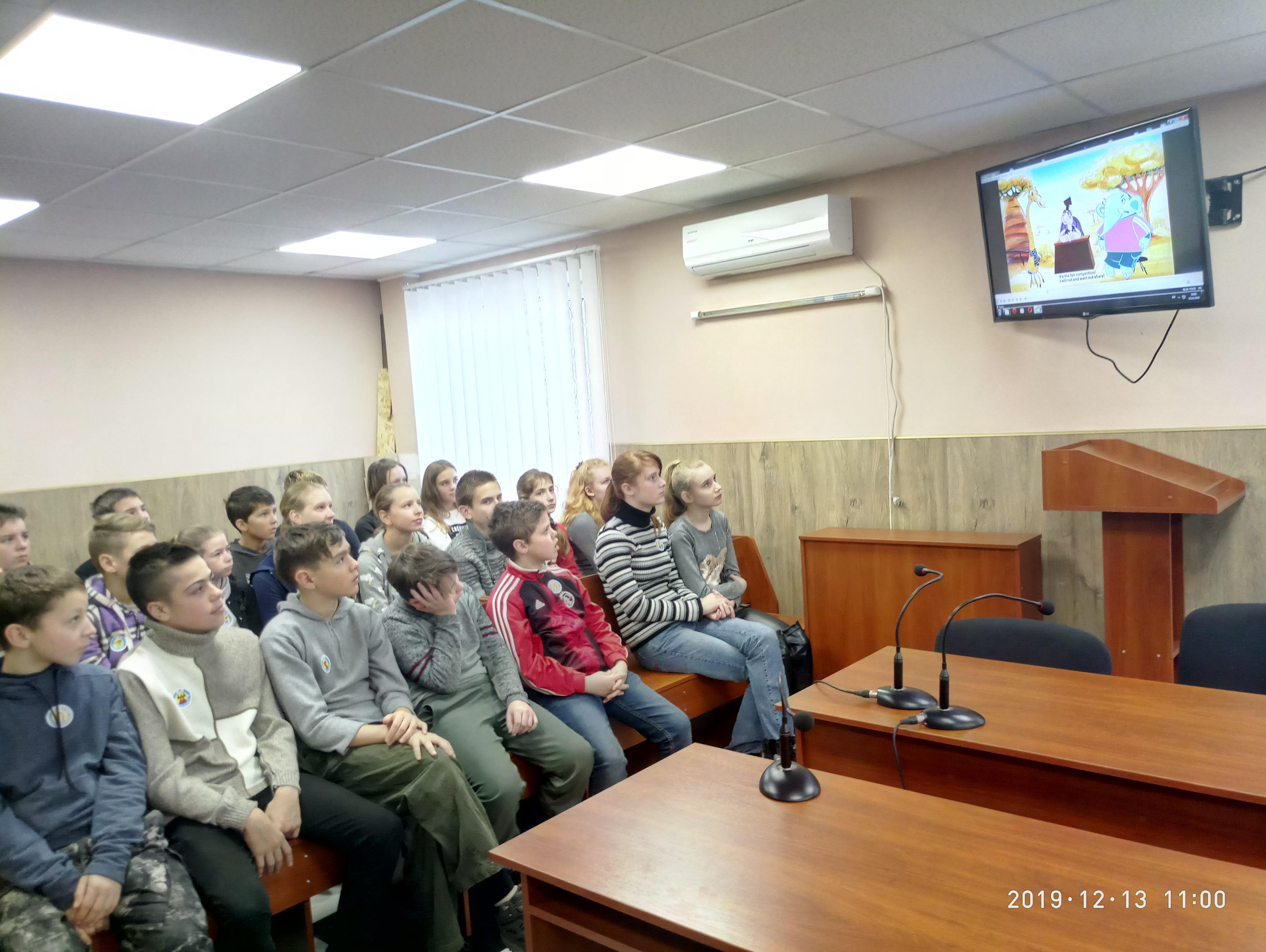 Під час уроку відбулася презентація мультфільму «Слон проти жирафи», знятого в рамках гарантового проекту.