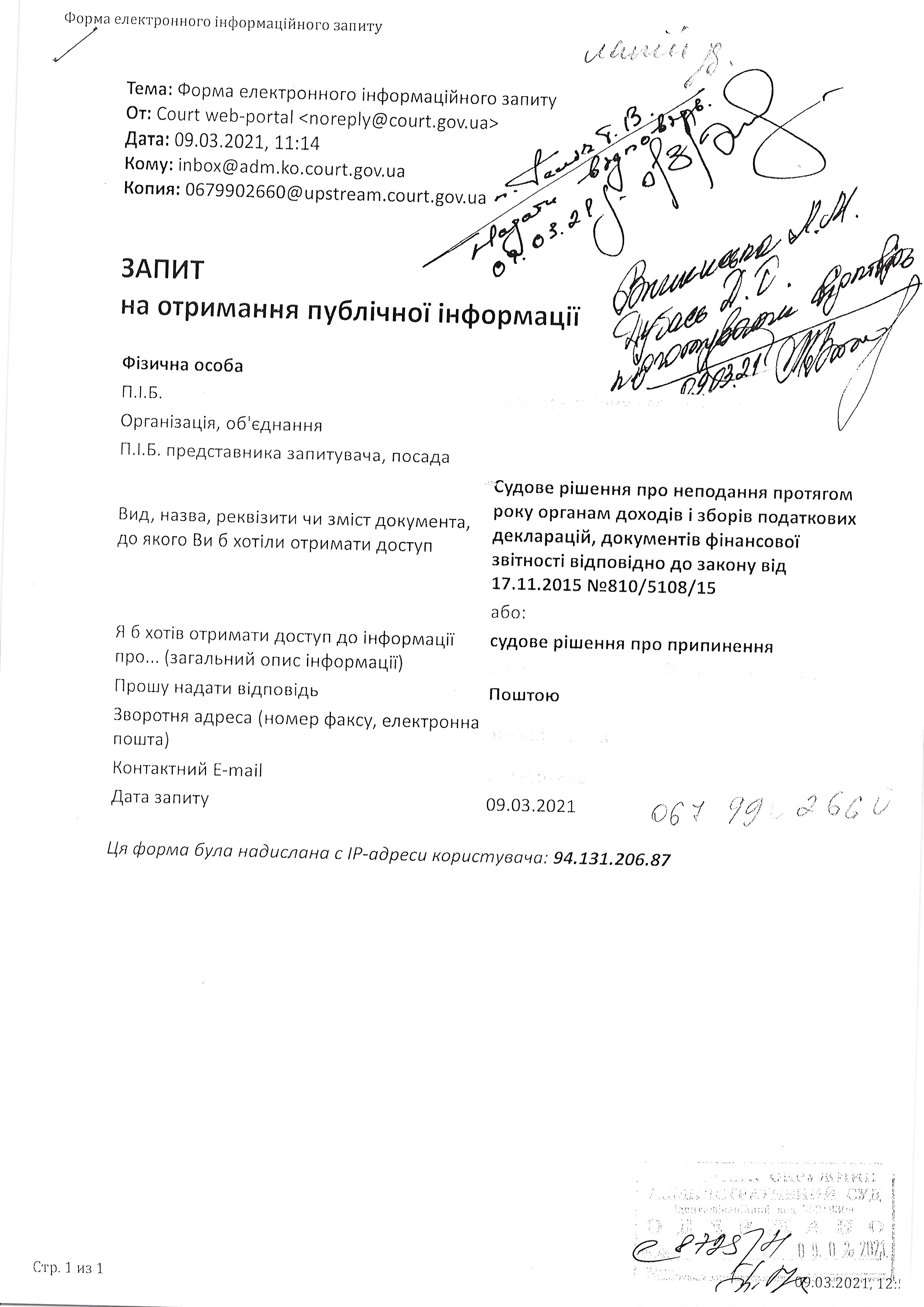 | 16.03.2021 | Особа 1 (з ДСА України) | Переглянути | Переглянути |