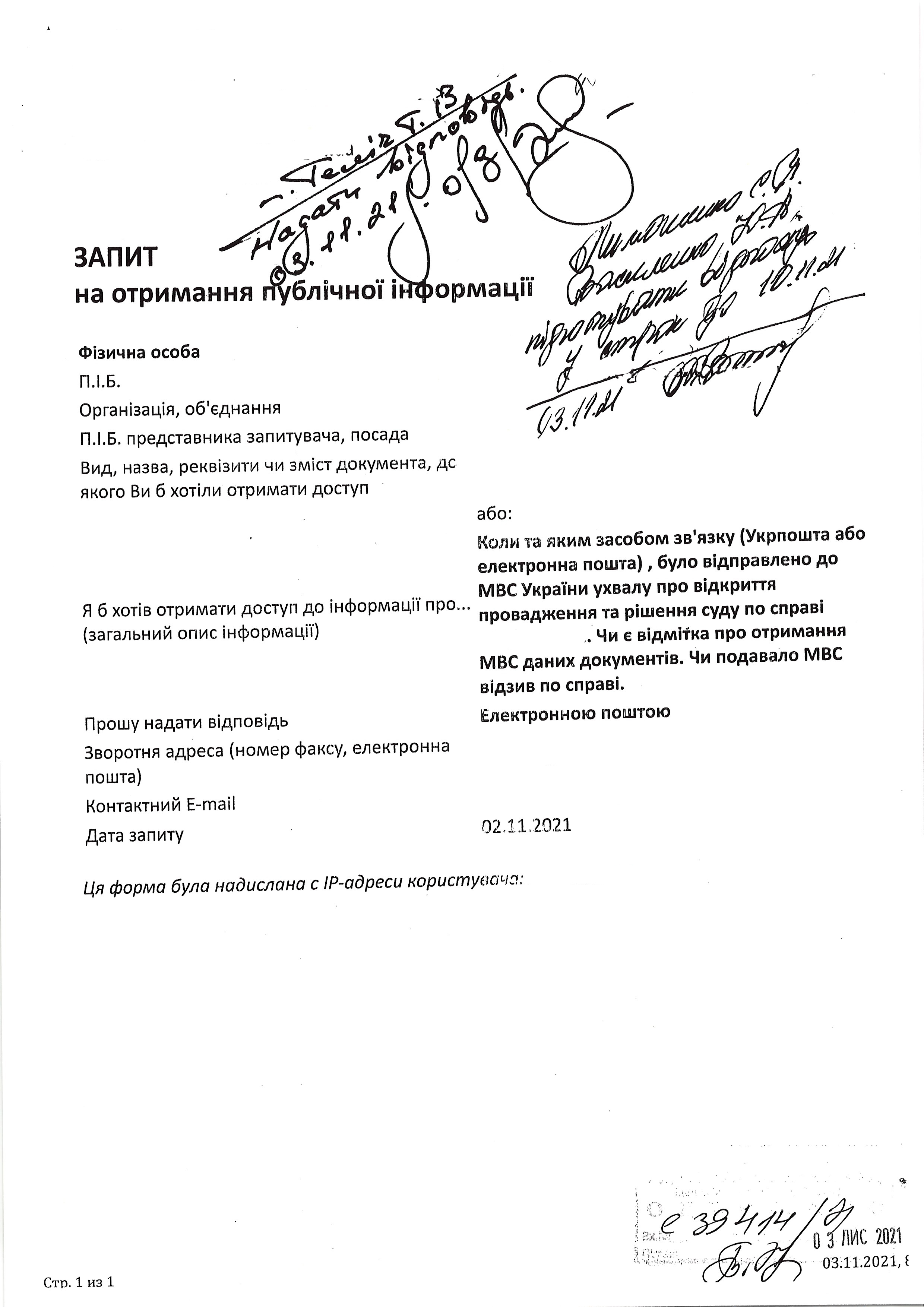 | 03.11.2021 | Особа 1 | Переглянути | Переглянути |
