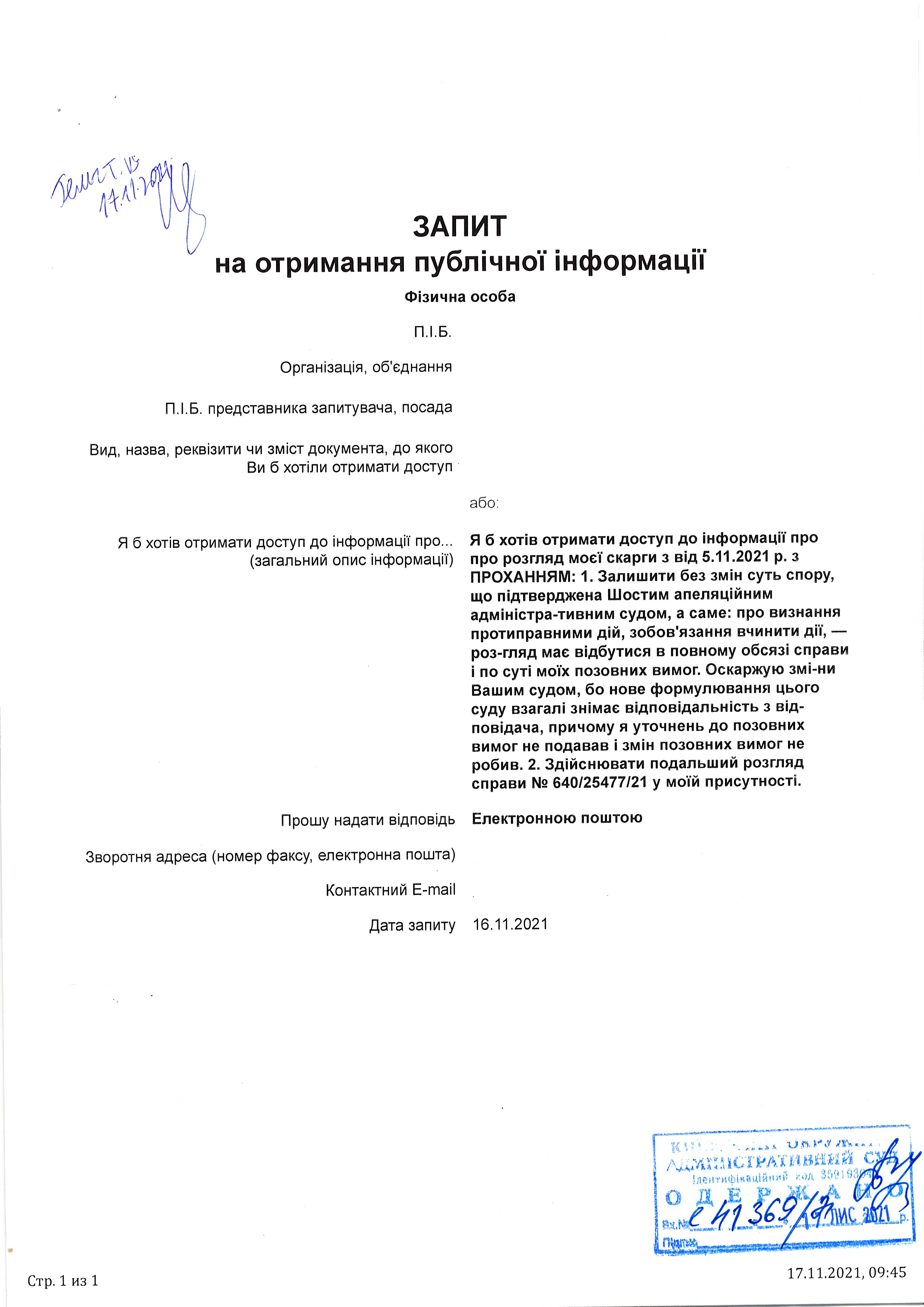 | 17.11.2021 | Особа 1 | Переглянути | Переглянути |