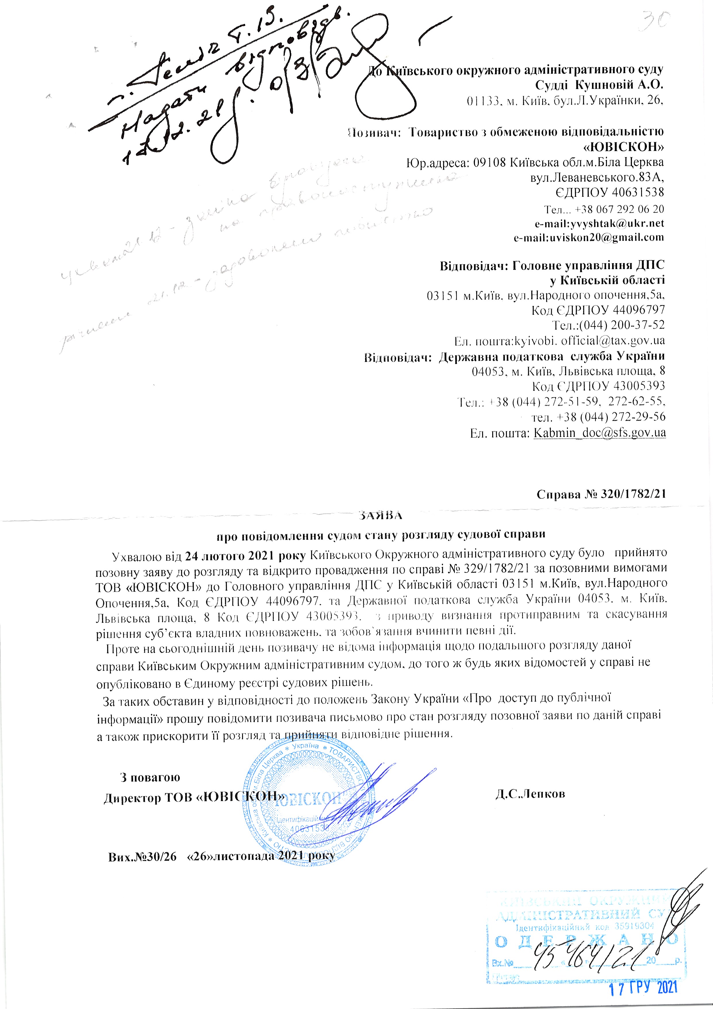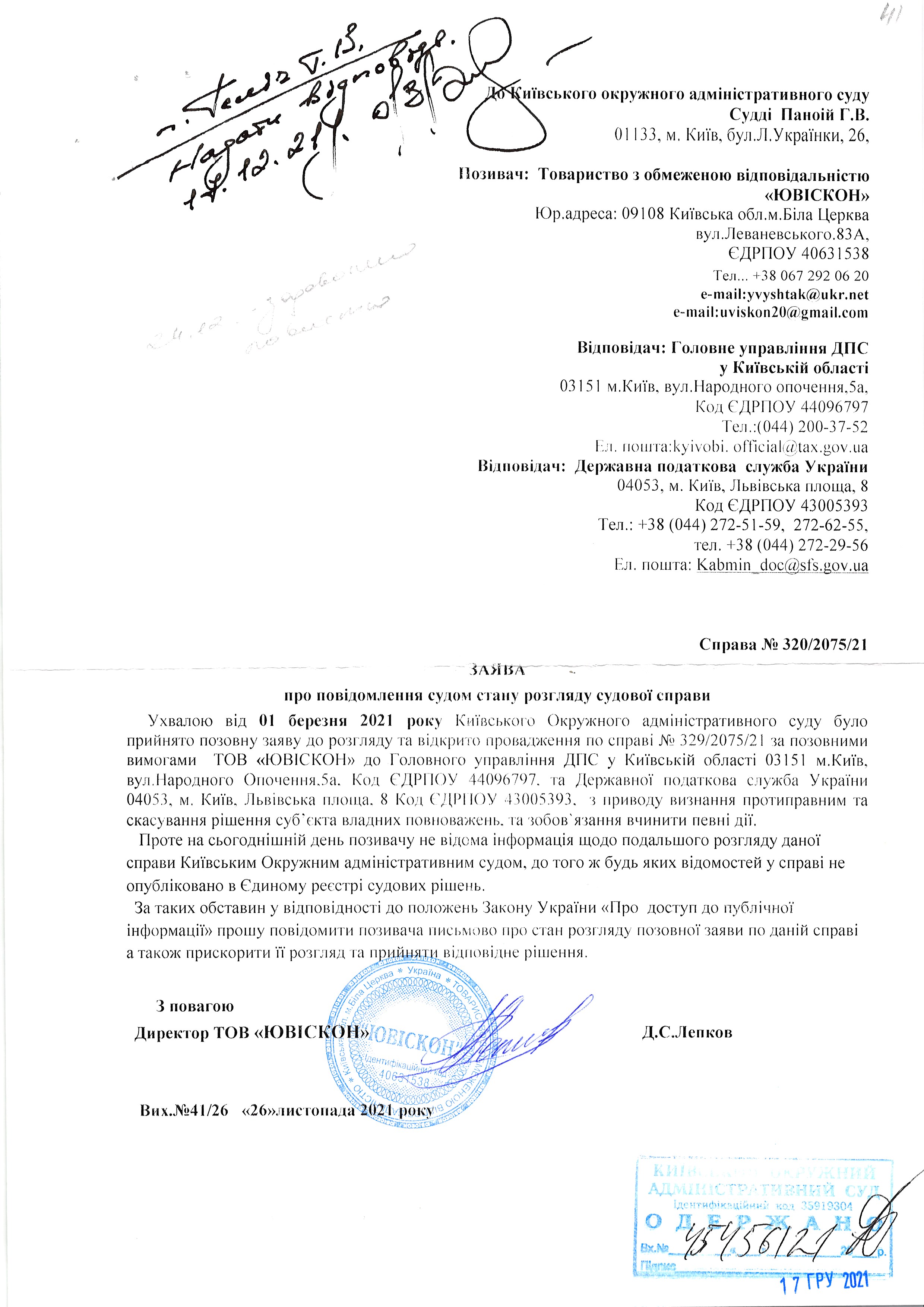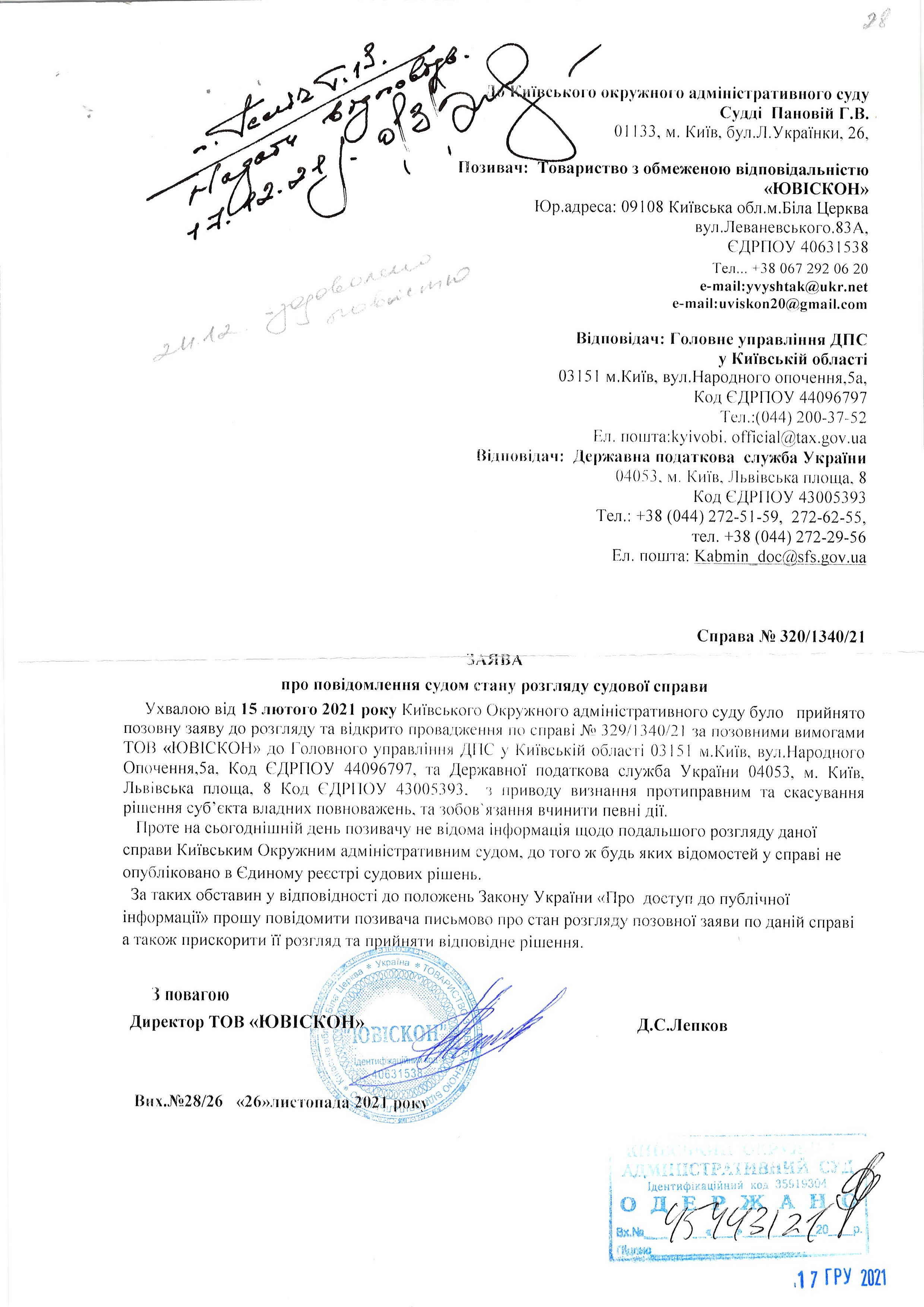 | 17.12.2021 | ТОВ "Ювіскон" | Переглянути | Переглянути |