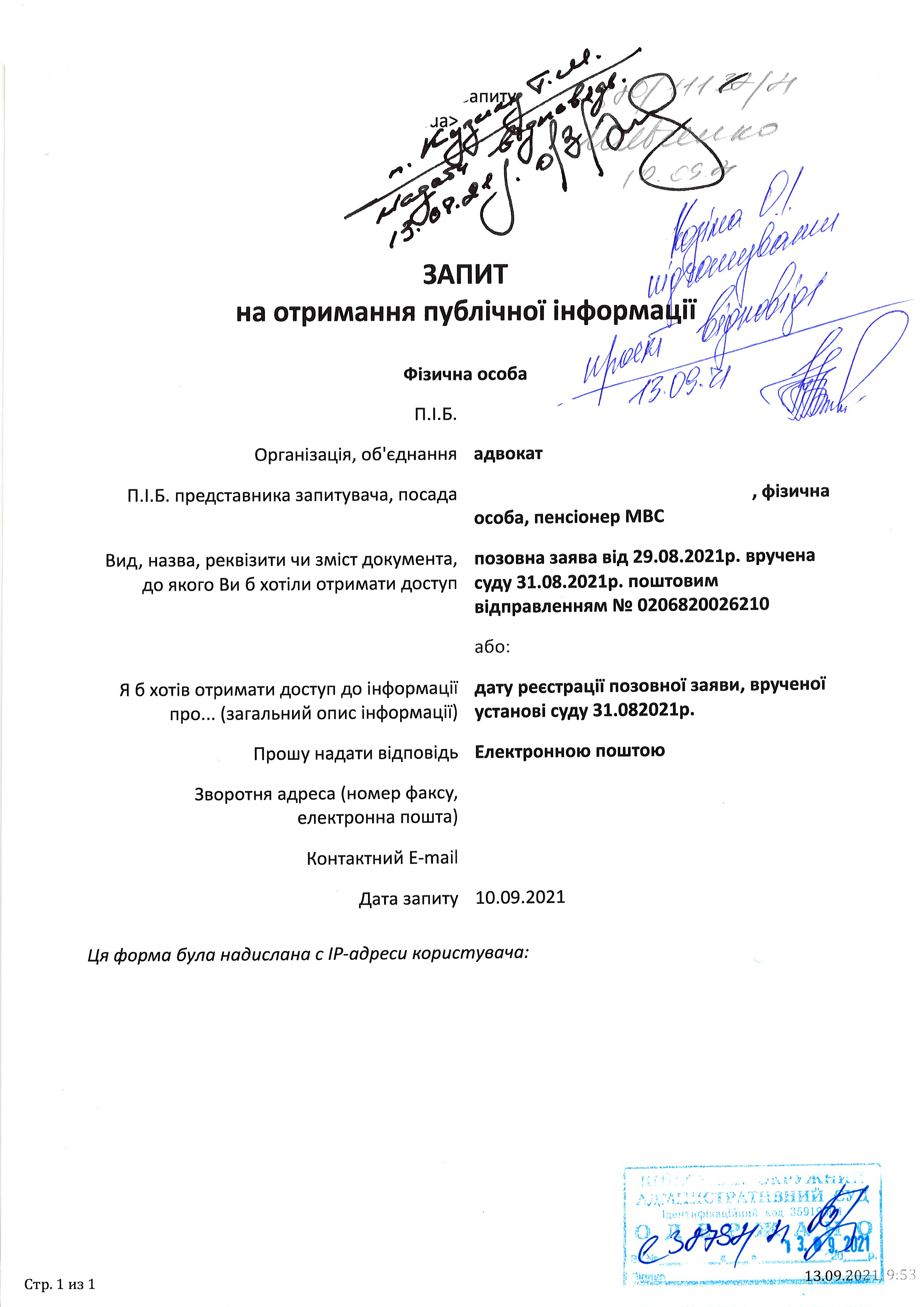 | 13.09.2021 | Особа 1 | Переглянути | Переглянути |
