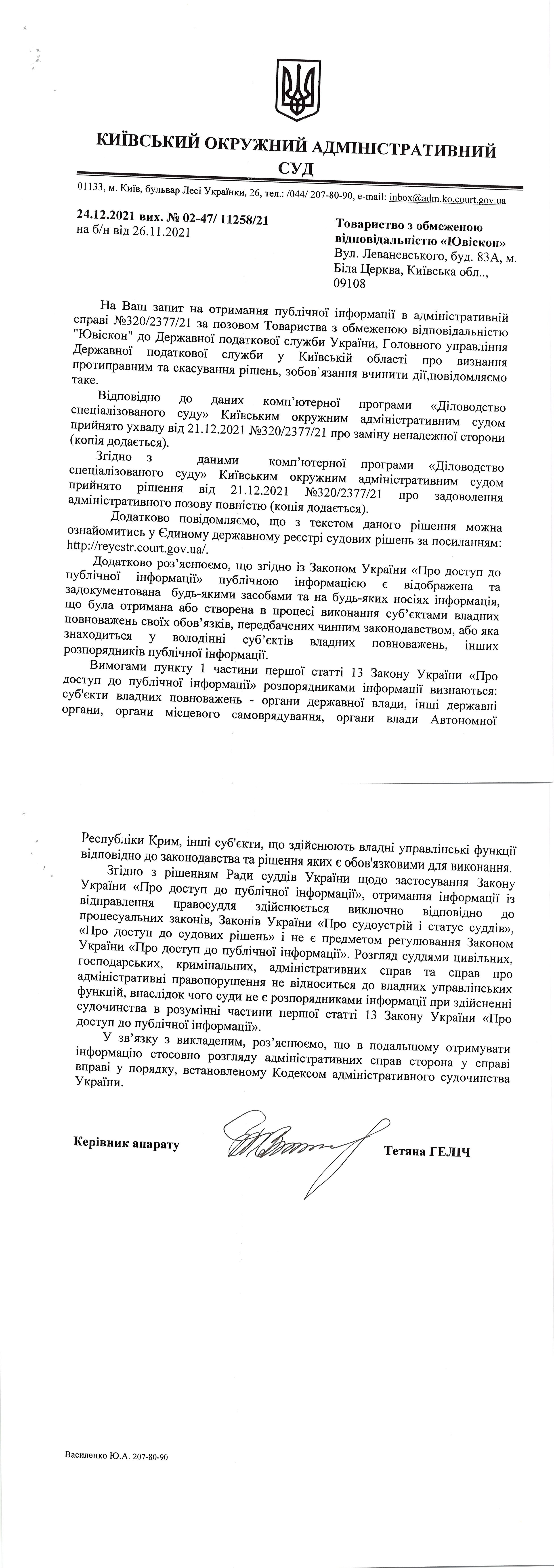 | 30.12.2021 | ТОВ "Ювіскон" | Переглянути | Переглянути |