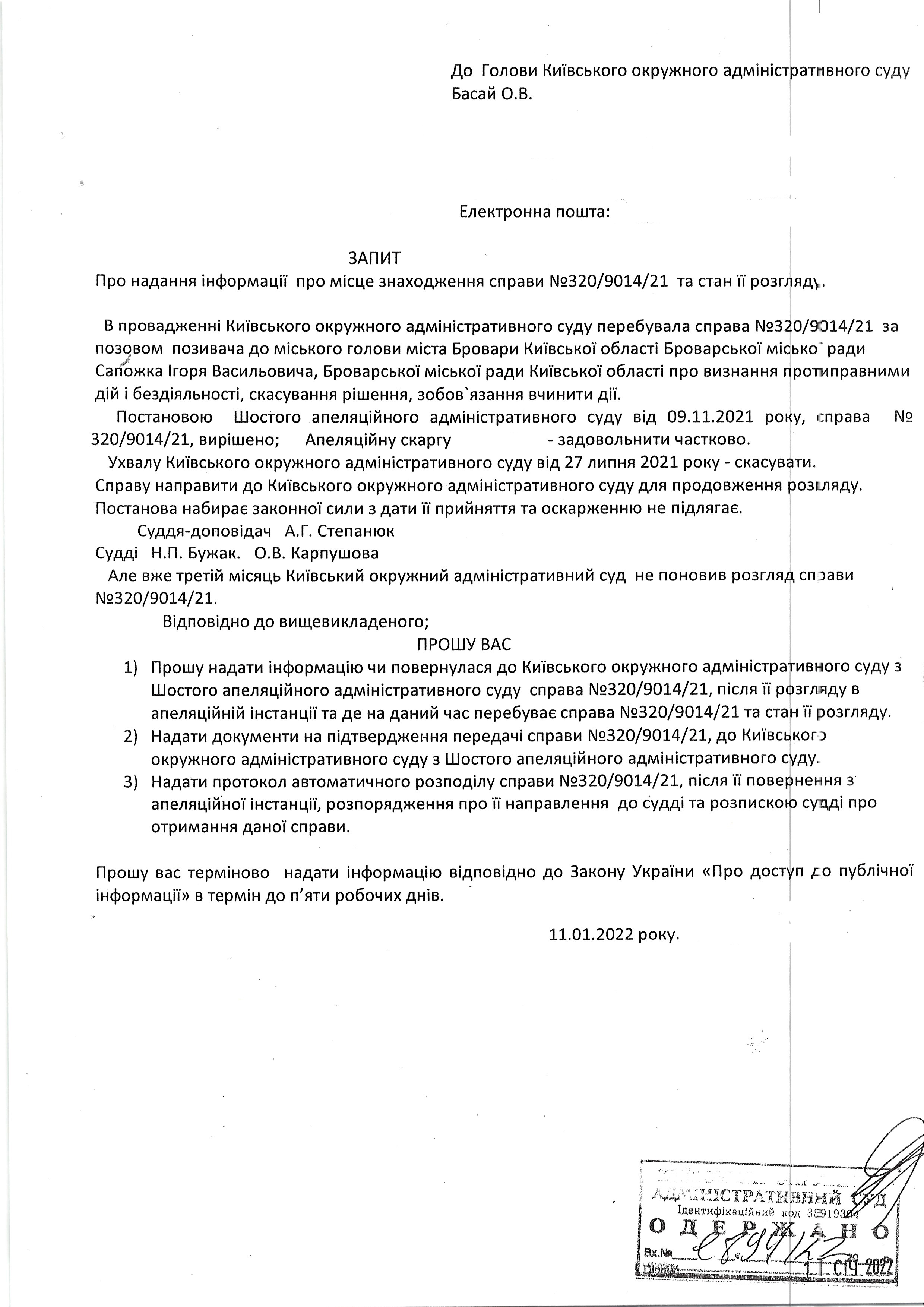 | Дата надходження запиту | Запитувач | Запит | Відповідь |
