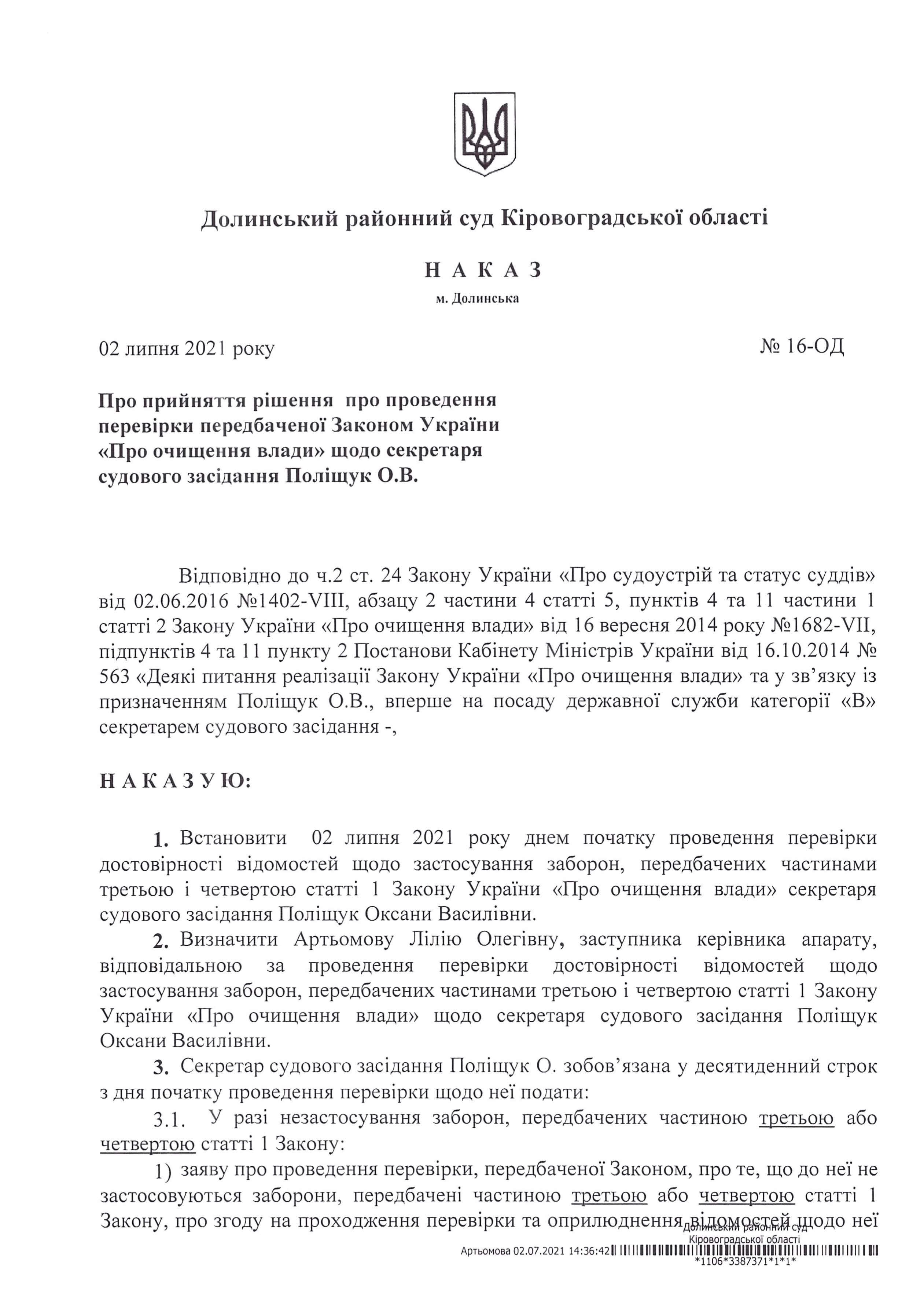 Долинський районний суд Кіровоградської області