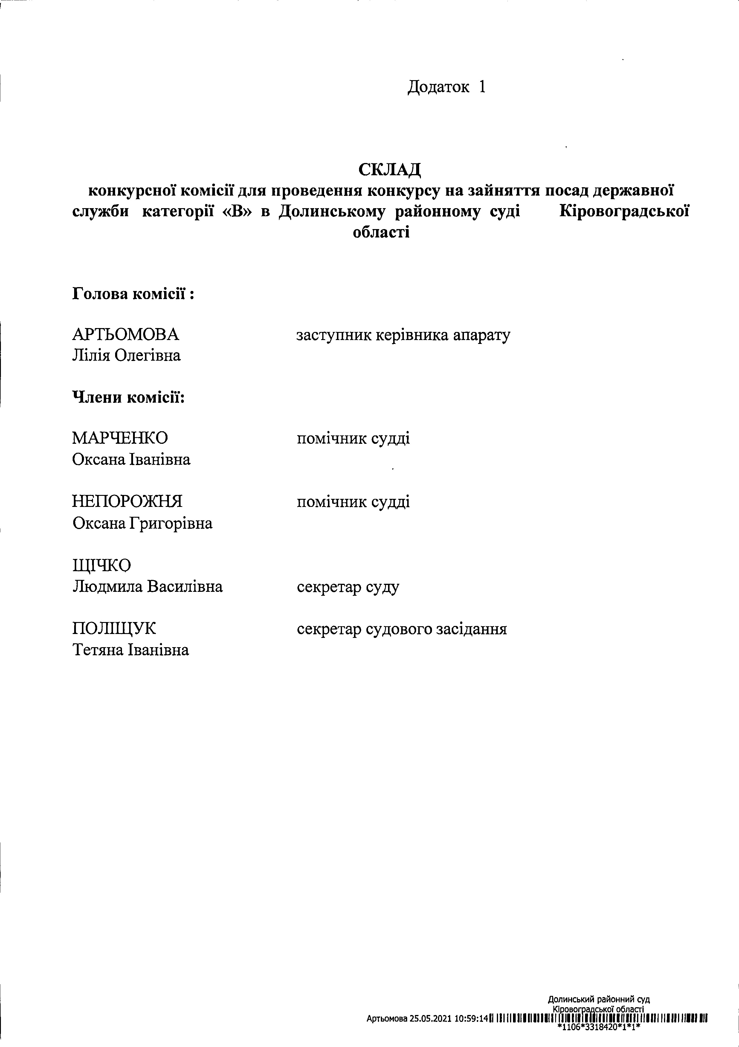 Наказ № 10-ОД Про утворення конкурсної комісії для провадення конкурсу на зайняття посад державної служби категорії "В" та Склад конкурсної комісії для проведення конкурсу на зайняття посад державної служби категорії "В" (Додаток1)