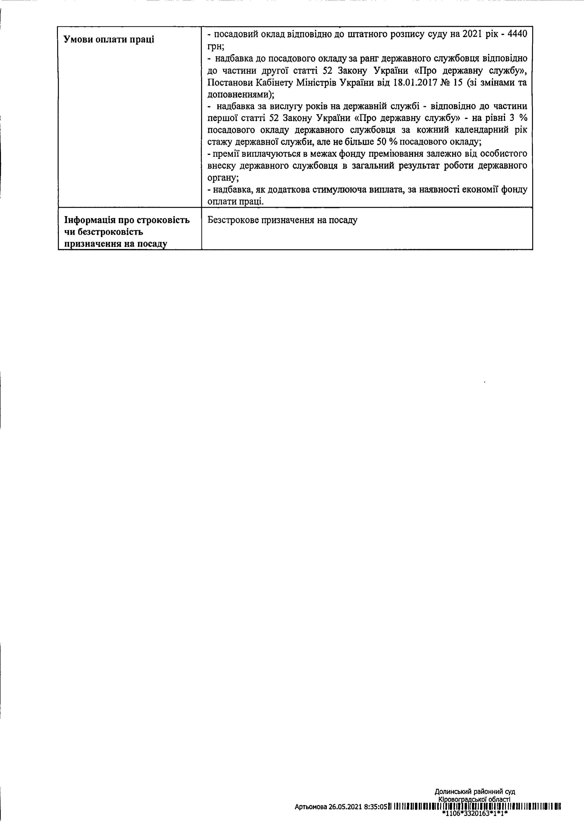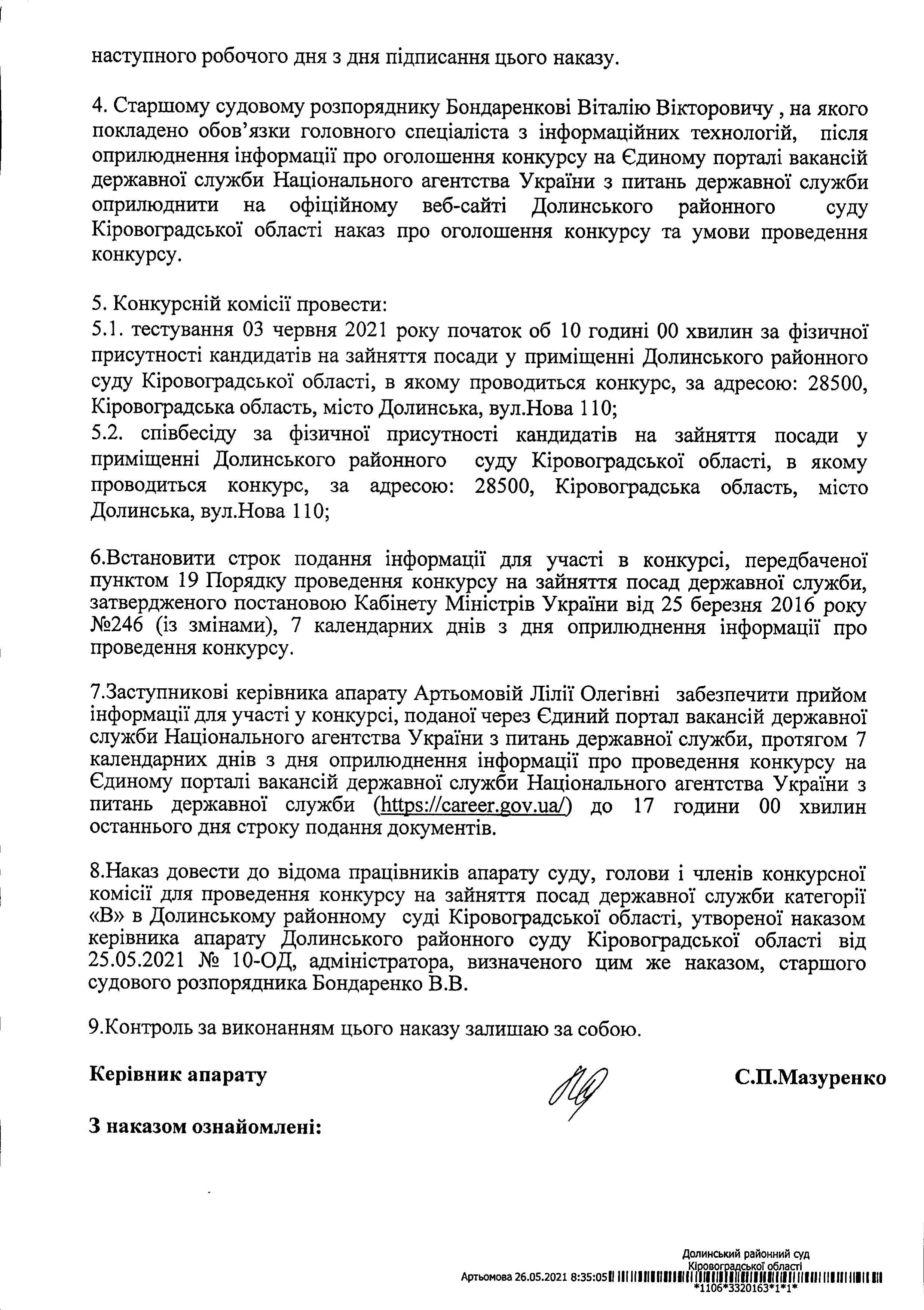 Наказ № 32-к Про оголошення конкурсу на зайняття вакантної посади державної служби категорії "В" - секретаря судового засідання та Умови проведення конкурсу на зайняття вакантної посади державної служби категорії "В" (Додаток 1)