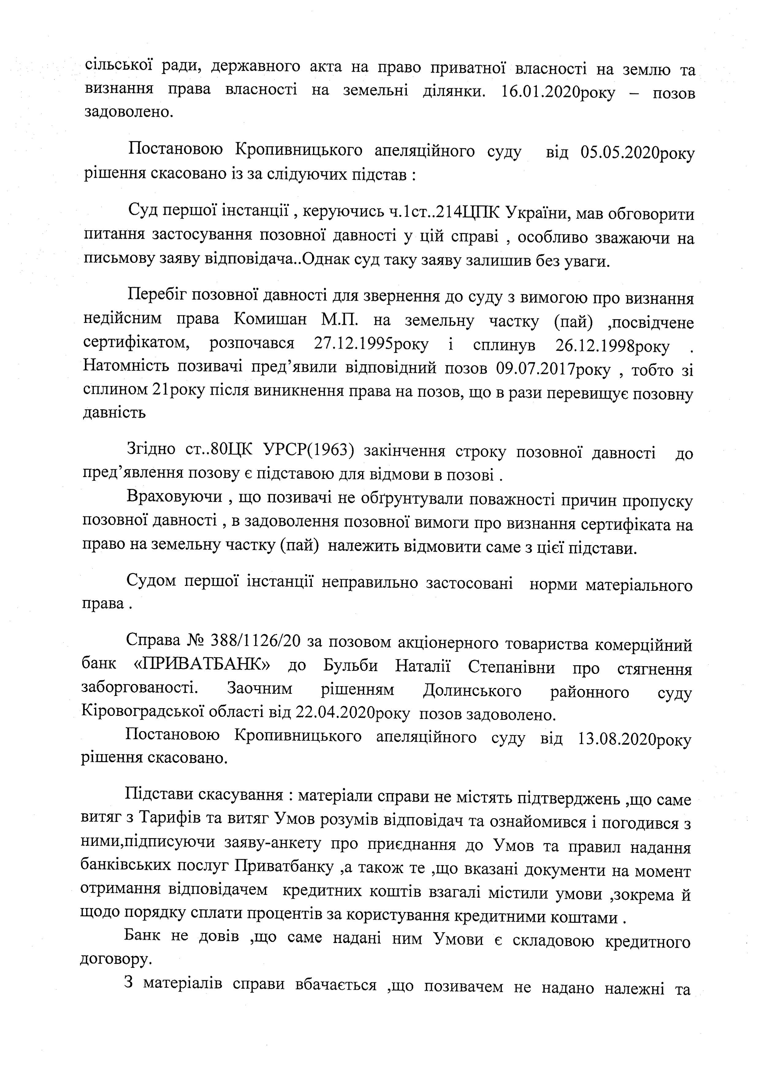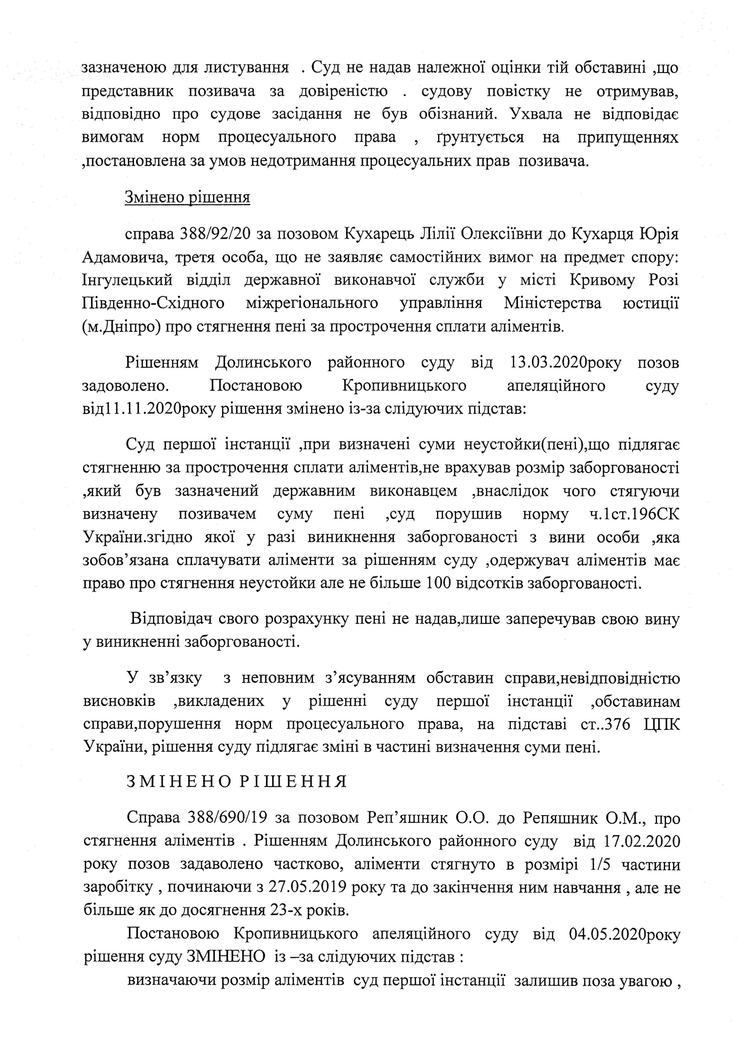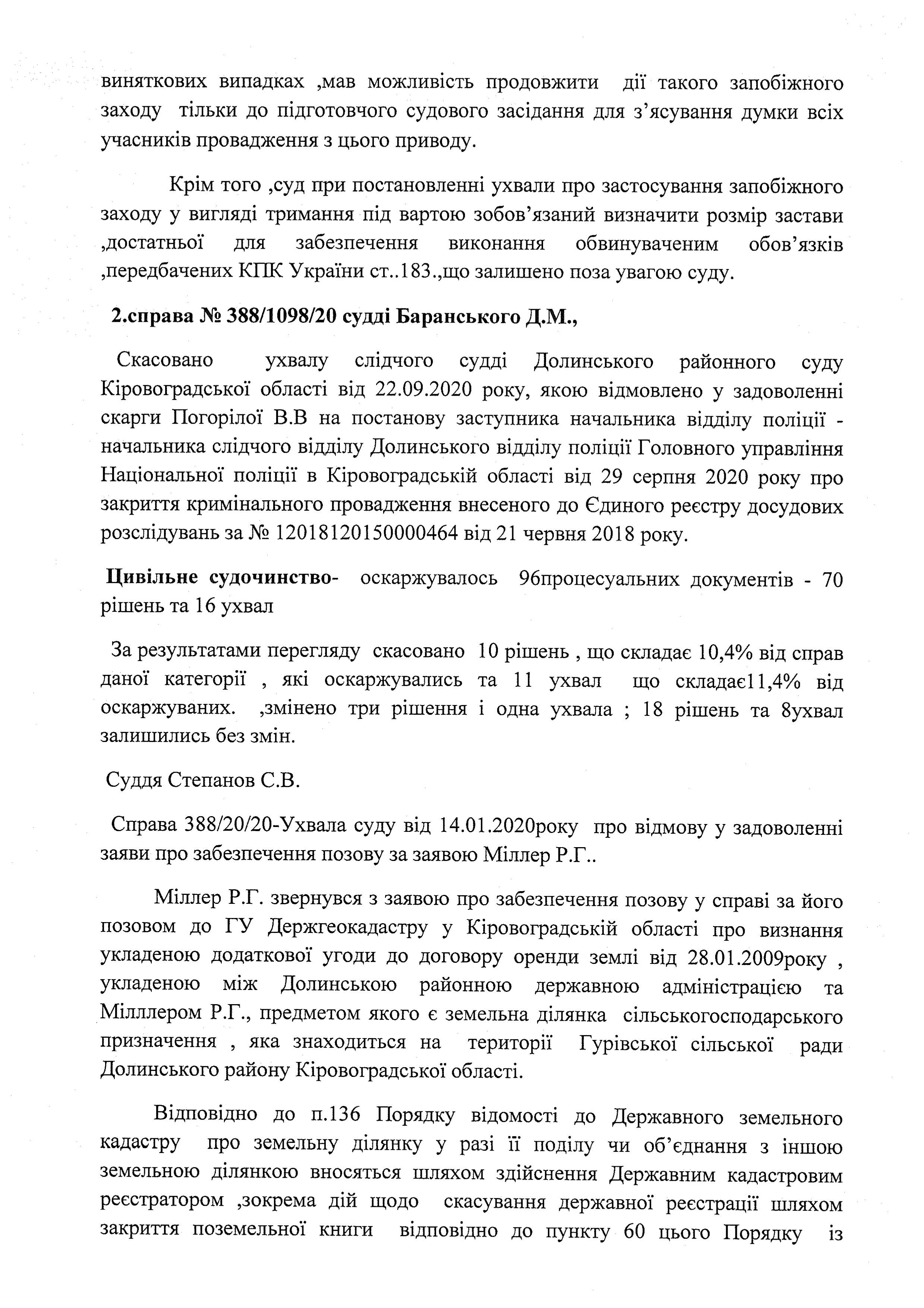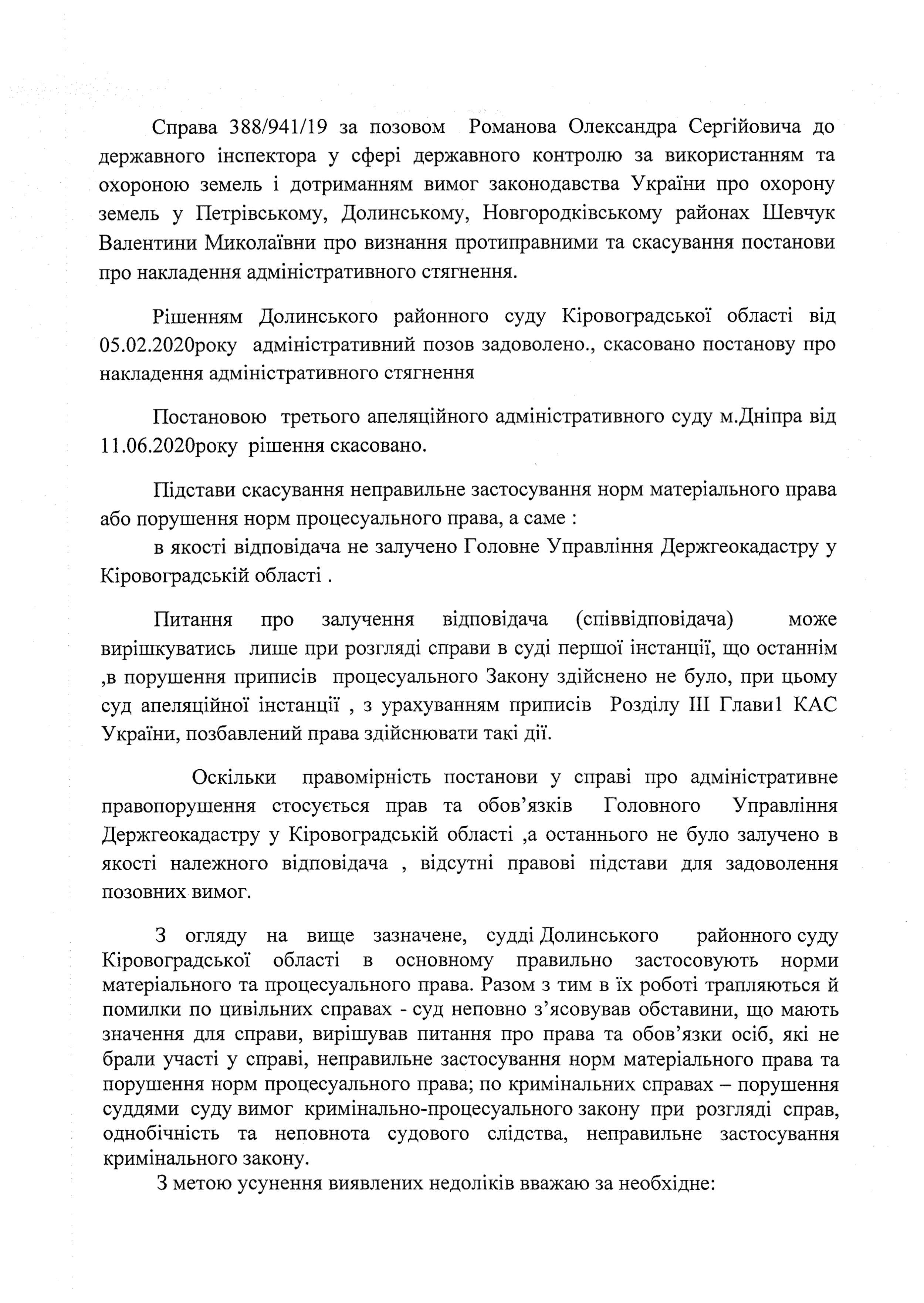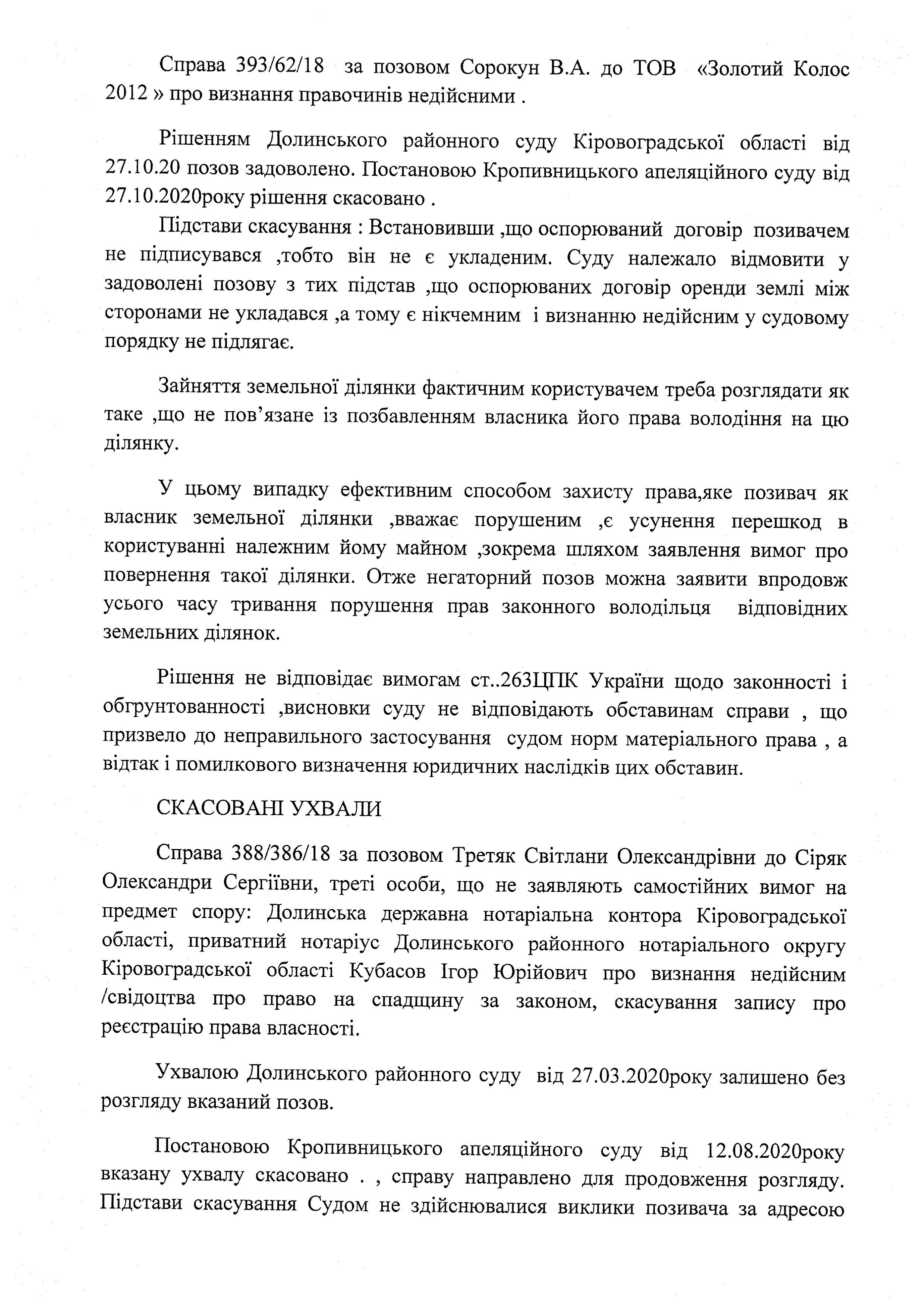 АНАЛІЗ скасованих та змінених вироків, рішень, постанов, ухвал Долинського районного суду Кіровоградської області у 2020 році.
