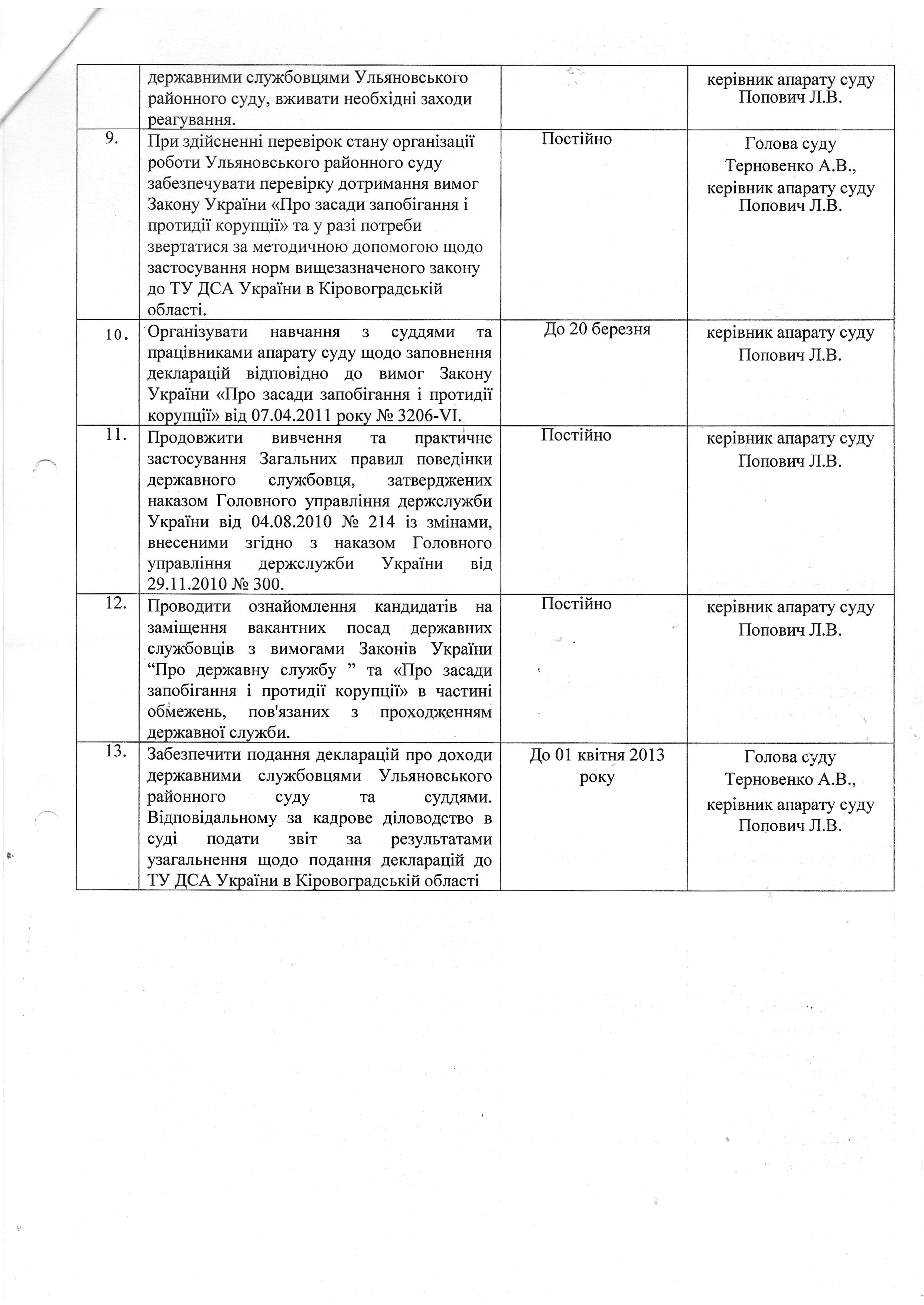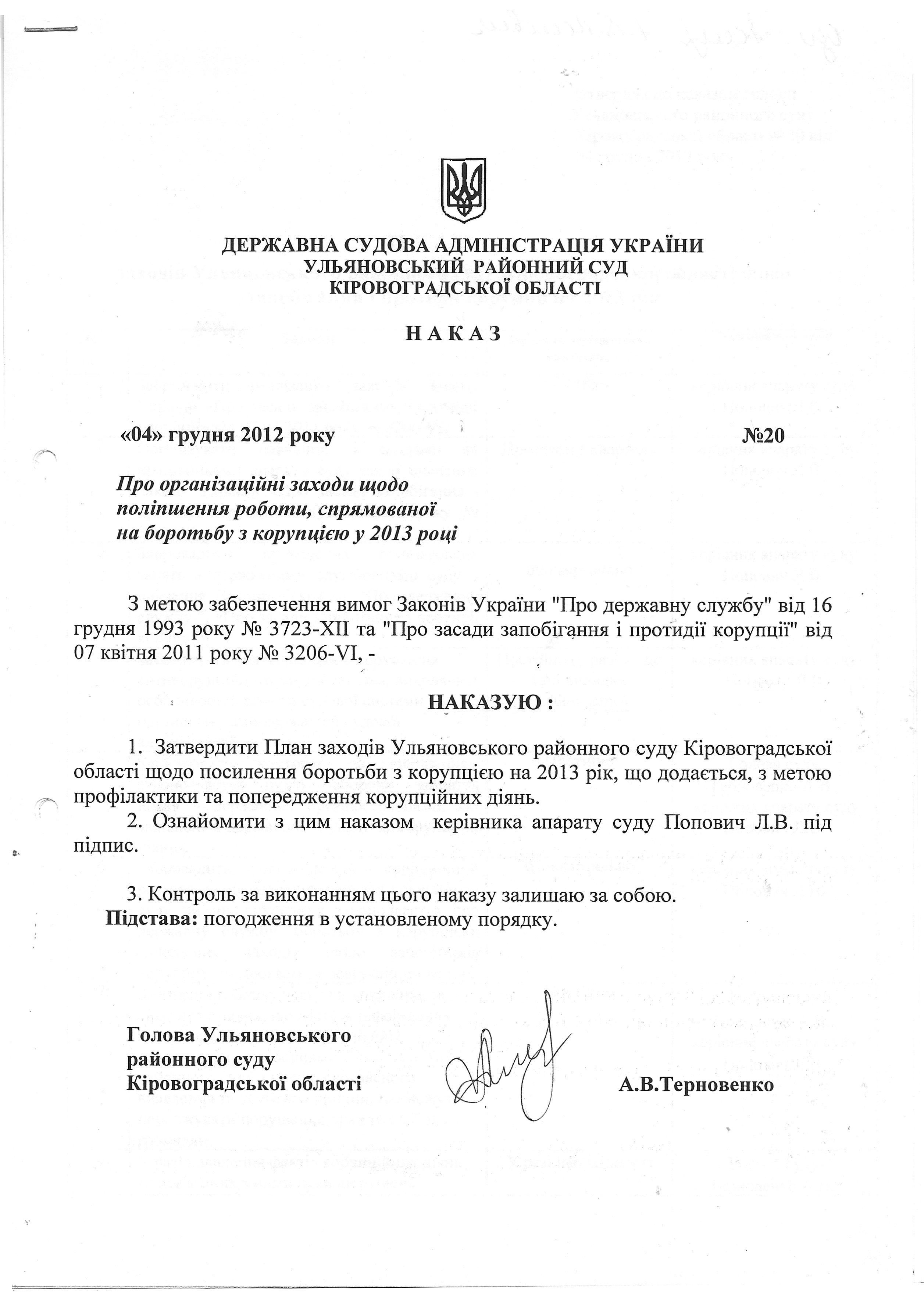 Організаційні заходи щодо поліпшення, роботи спрямованої на боротьбу з корупцією у 2012 році.