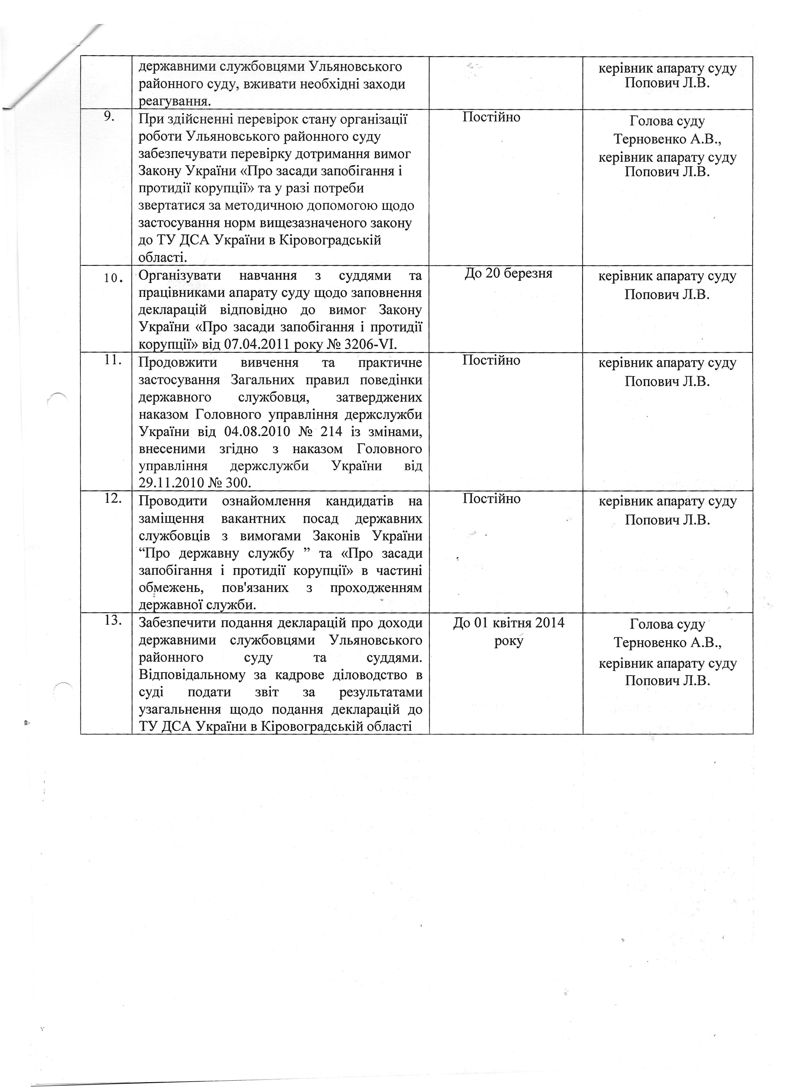 Організаційні заходи щодо поліпшення, роботи спрямованої на боротьбу з корупцією у 2013 році.