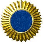 Національна кокарда (рис. 19). Металева. Являє собою рельєфний променистий круг жовтого металу з центральним круглим медальйоном синьої емалі (діаметр кокарди - 28 мм). Кріпиться на кашкеті за допомогою клямра або гвинта з гайкою.