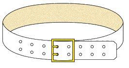 Ремінь (рис. 24). Виготовляється із штучної шкіри білого кольору шириною 35 мм і застібається на рамочну ф-подібну пряжку з металу жовтого кольору з двома шпеньками. На ремені кріпиться один хомутик для утримання вільного кінця. Вільний кінець має отвори для шпеньок.