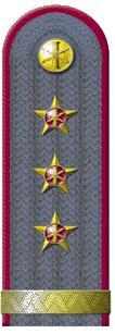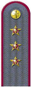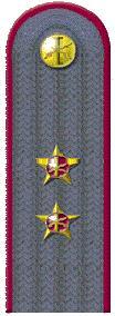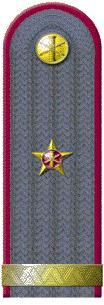 Наплічні знаки розрізнення (рис. 26). Являють собою погони сіро-сталевого кольору із зовнішнім кантом крапового кольору прямокутної форми, із заокругленою торцевою стороною та металевим ґудзиком. На погонах розміщуються зірки-емблеми та галуни, згідно присвоєних рангів.