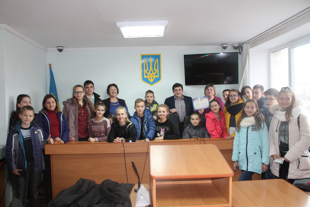 Після чого, у залі судових засідань суду відбулася змістовна та пізнавальна зустріч з головою суду – Костянтином Миколайовичем Притулою та заступником голови суду – Любов Іванівною Хилько.