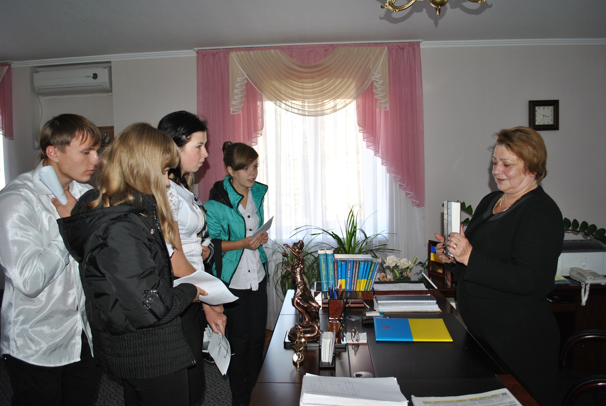 Після виступу голови суду учні оглянули правову літературу, яка була їм представлена, та останнім була проведена екскурсія приміщенням суду, де вони змогли оглянули стенди, фотогалерею суду, зали судових засідань та службові кабінети.