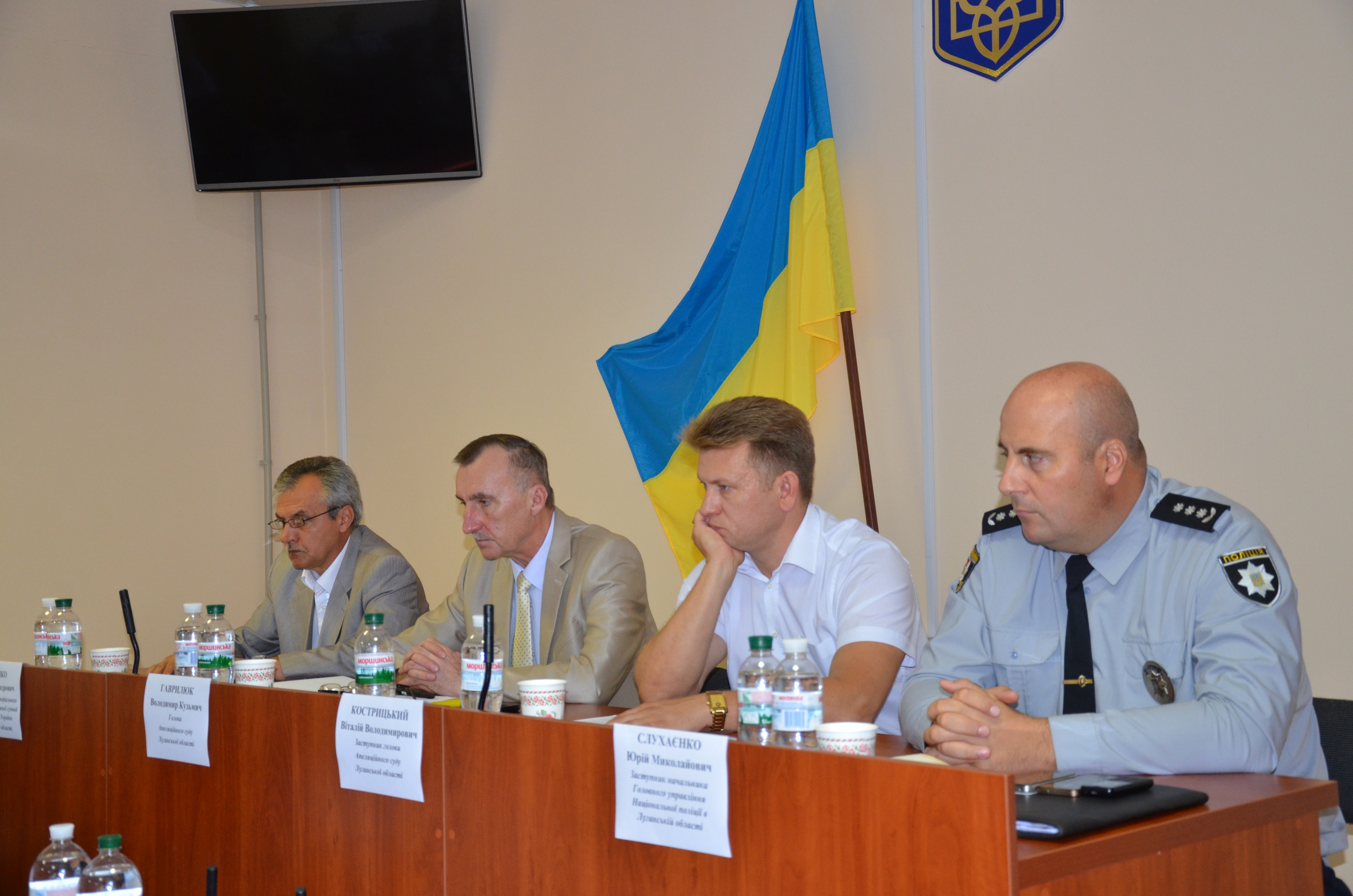 В обговоренні взяли участь голова Апеляційного суду Луганської області Володимир Гаврилюк, заступник голови Віталій Кострицький, начальник територіального управління Державної судової адміністрації України в Луганській області Ігор Савенко, заступник начальника Головного управління Національної поліції в Луганській області Юрій Слухаєнко, суддя Рубіжанського міського суду Луганської області Денис Коваленко, голова Біловодського районного суду Луганської області Максим Рукас, голова Старобільського районного суду Луганської області Світлана Олійник, т.в.о. начальника управління превентивної діяльності Головного управління Національної поліції в Луганській області В’ячеслав Абрамов, т.в.о. начальника управління патрульної поліції в Луганській області Олександр Гостіщев, начальники та заступники начальників відділів поліції Луганської області.
