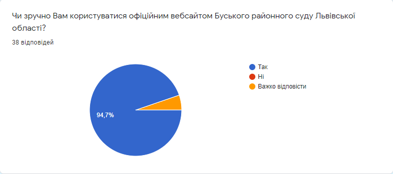 Варто зазначити, що проведення опитувань учасників судового процесу та відвідувачів суду стало доброю традицією нашого суду. В цьому році вирішили провести альтернативне опитування за допомогою GOOGLE форми, з огляду на обмеження запроваджені карантином, які створила пандемія COVID-19.